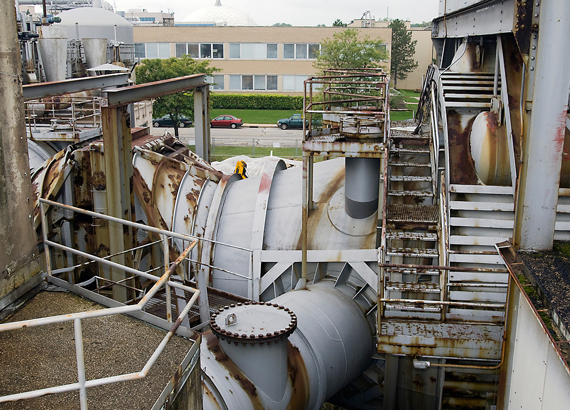 Rusting secondary cooler at Propulsion Systems Laboratory (PSL) 30 years after the shutdown of the facility. (9/30/2008)