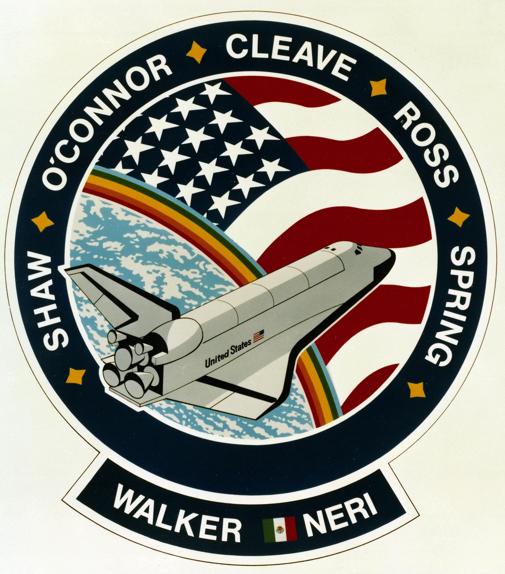 This is the insignia designed by the STS-61B crewmembers to represent their November 1985 mission aboard the Space Shuttle Atlantis, depicted here in earth orbit, making only its second space flight. The design is surrounded by the sumames of the seven crewmembers.