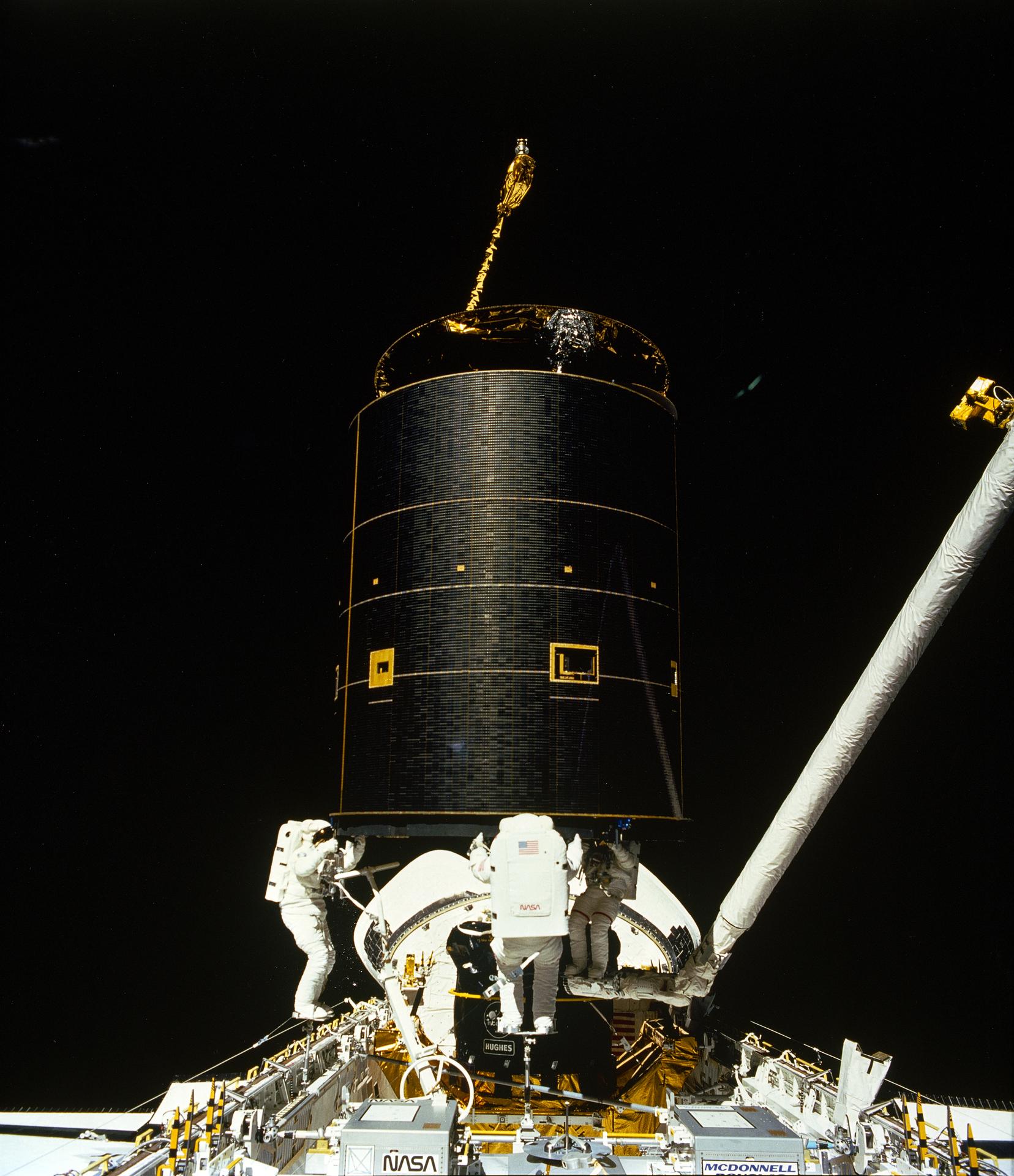 STS-49, the first flight of the Space Shuttle Orbiter Endeavour, lifted off from launch pad 39B on May 7, 1992 at 6:40 pm CDT. The STS-49 mission was the first U.S. orbital flight to feature 4 extravehicular activities (EVAs), and the first flight to involve 3 crew members working simultaneously outside of the spacecraft. The primary objective was the capture and redeployment of the INTELSAT VI (F-3), a communication satellite for the International Telecommunication Satellite organization, which was stranded in an unusable orbit since its launch aboard the Titan rocket in March 1990. The 4.5 ton INTELSAT VI was successfully snared by three astronauts on a third EVA. The three hand-grabbed the errant satellite, pulled it into the cargo bay, and attached a boost-given perigee stage before its release.