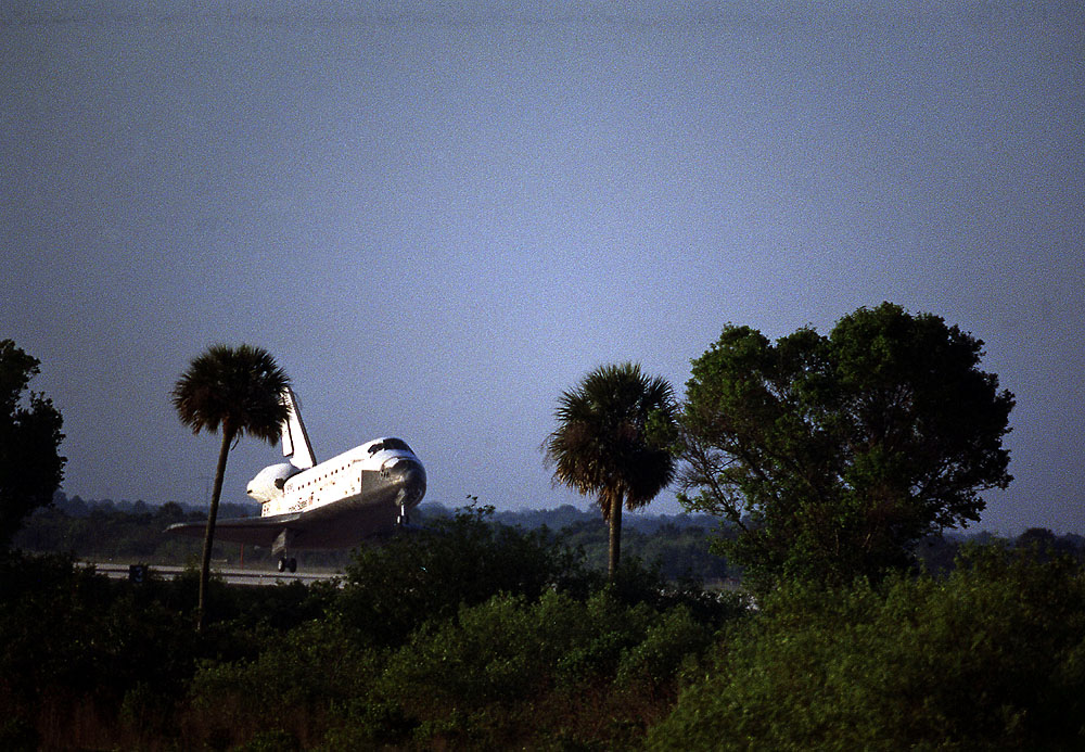 A four-million-mile journey draws to a flawless ending as the orbiter Discovery (STS-56) lands at Kennedy Space Center's (KSC) Shuttle Landing Facility. Aboard for the second shuttle mission of 1993 were a crew of five and the Atmospheric Laboratory for Applications and Science 2 (ATLAS 2), the second in a series of missions to study the sun's energy output and Earth's middle atmosphere chemical make-up, and how these factors affect levels of ozone.