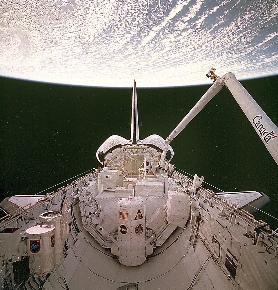This is an STS-66 mission onboard photo showing the Remote Manipulator System (RMS) moving toward one of the solar science instruments for the third Atmospheric Laboratory for Applications and Science (ATLAS-3) mission in the cargo bay of the Orbiter Atlantis. During the ATLAS missions, international teams of scientists representing many disciplines combined their expertise to seek answers to complex questions about the atmospheric and solar conditions that sustain life on Earth. The ATLAS program specifically investigated how Earth's middle and upper atmospheres and climate are affected by by the sun and by products of industrial and agricultural activities on Earth. Thirteen ATLAS instruments supported experiments in atmospheric sciences, solar physics, space plasma physics, and astronomy. The instruments were mounted on two Spacelab pallets in the Space Shuttle payload bay. The ATLAS-3 mission continued a variety of atmospheric and solar studies, to improve understanding of the Earth's atmosphere and its energy input from the sun. A key scientific objective was to refine existing data on variations in the fragile ozone layer of the atmosphere. The Shuttle Orbiter Atlantis was launched on November 3, 1994 for the ATLAS-3 mission (STS-66). The ATLAS program was managed by the Marshall Space Flight Center.