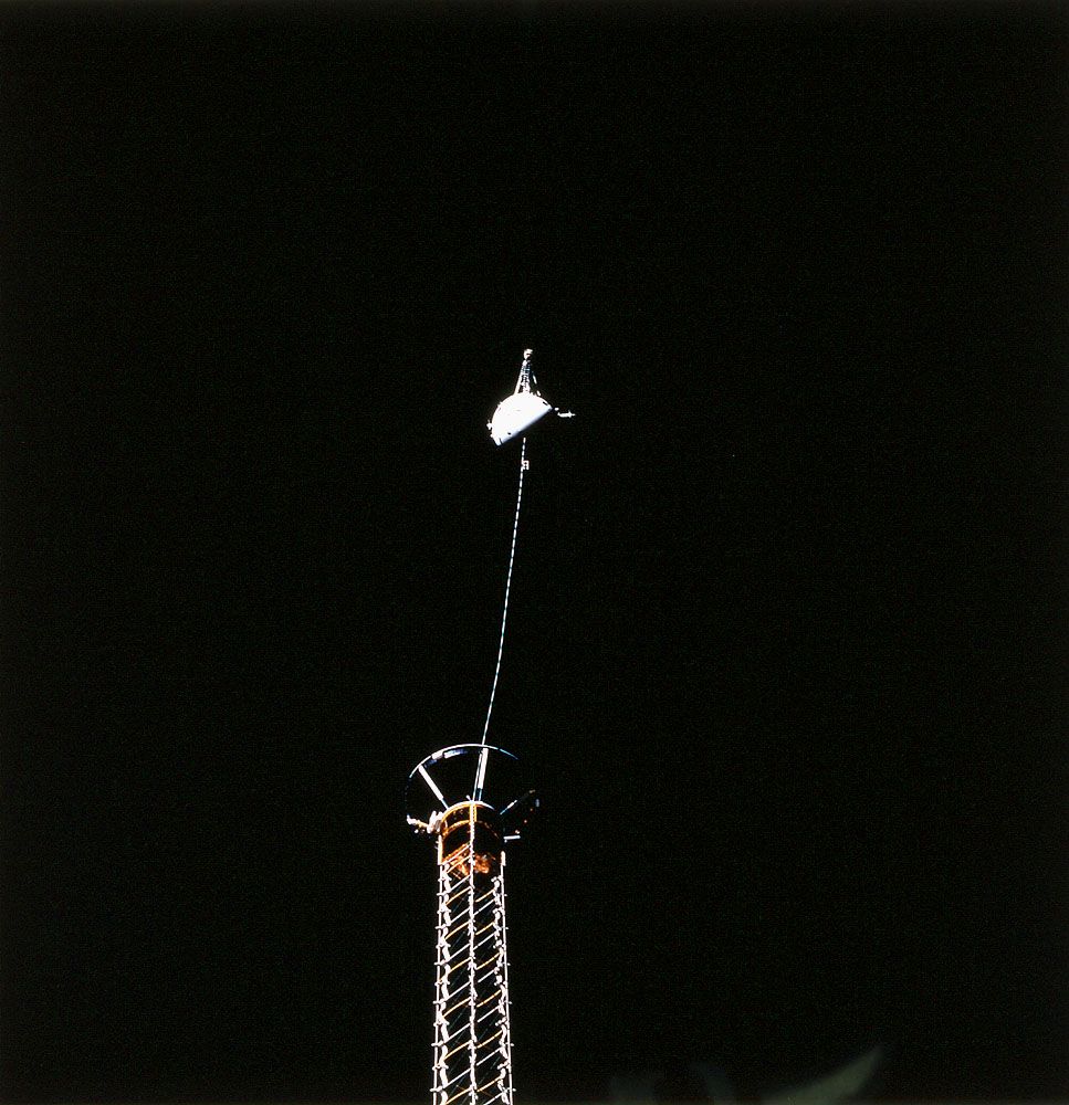 An STS-75 onboard photo of the Tethered Satellite System-1 Reflight (TSS-1R) atop its extended boom. The TSS-1R was a reflight of TSS-1, which was flown on the Space Shuttle in July/August, 1992. Building on the knowledge gained on the TSS-1 about tether dynamics, the TSS will circle the Earth at an altitude of 296 kilometers (184 miles), placing the tether system well within the rarefield, electrically charged layer of the atmosphere known as the ionosphere. The satellite was plarned to be deployed 20.7 kilometers (12.9 miles) above the Shuttle. The conducting tether, generating high voltage and electrical currents as it moves through the ionosphere cutting magnetic field lines, would allow scientists to examine the electrodynamics of a conducting tether system. In addition, the TSS would increase our understanding of physical processes in the near-Earth space environment, such as plasma waves and currents. The tether on the TSS broke as the Satellite was nearing the full extent of its 12.5 mile deployment from the Shuttle. The TSS was a cooperative development effort by the Italian Space Agency (ASI) and NASA, and was managed by scientists at the Marshall Space Flight Center.