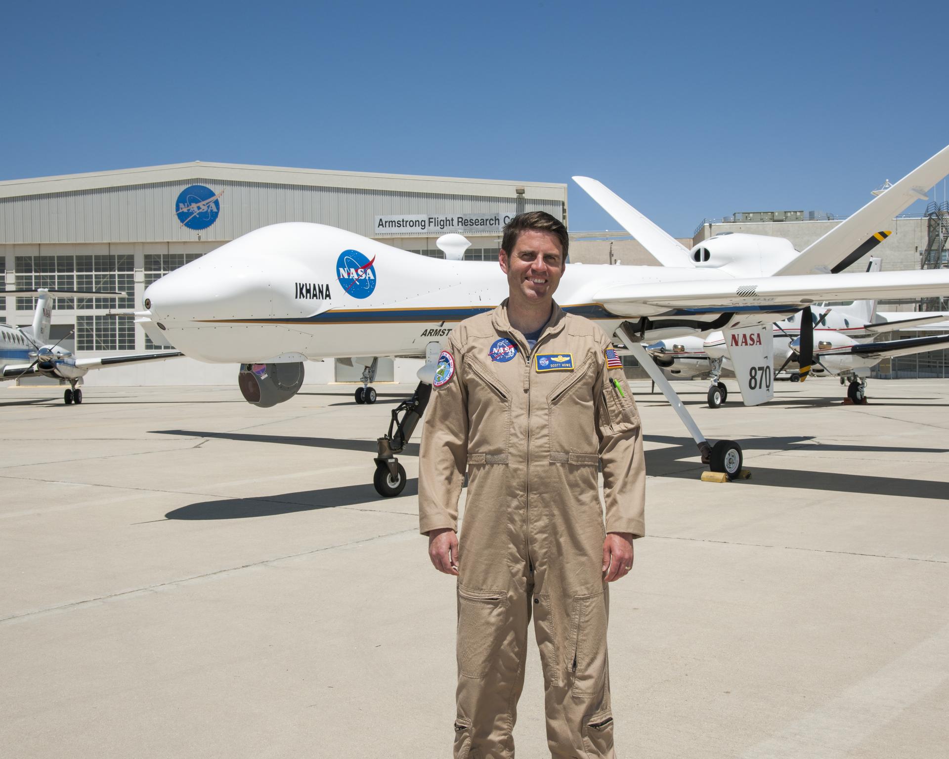 Scott Howe, a pilot at NASA's Armstrong Flight Research Center in California, assisted with monitoring California's wildfires by operating a MQ-9 remotely piloted aircraft during launches and recoveries for the California Air National Guard. The MQ-9 closely resembles the Ikhana aircraft, which Howe had piloted at Armstrong.