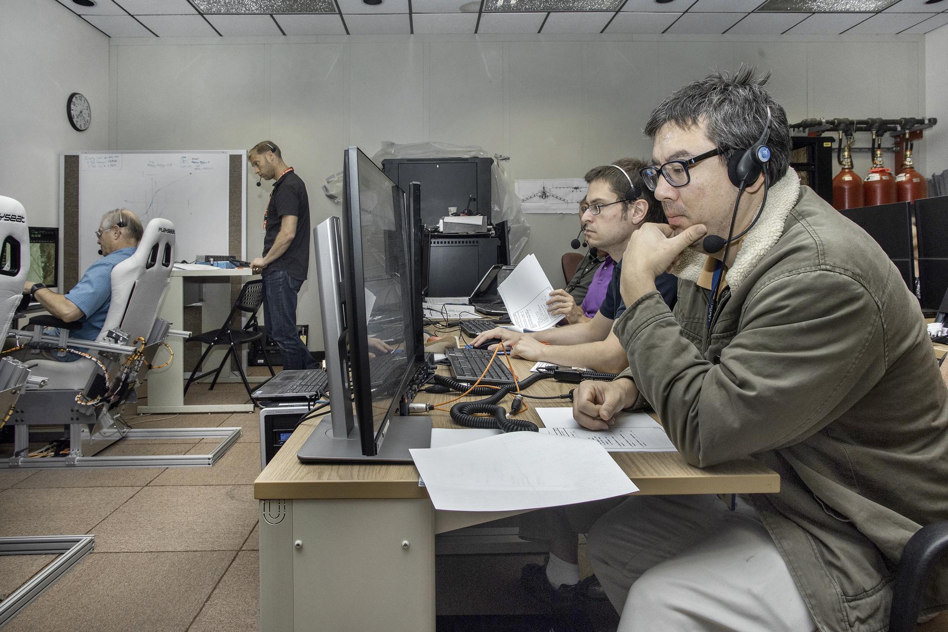 Peter Suh and Jeff Ouellette complete preflight checks of the remotely piloted X-56A.