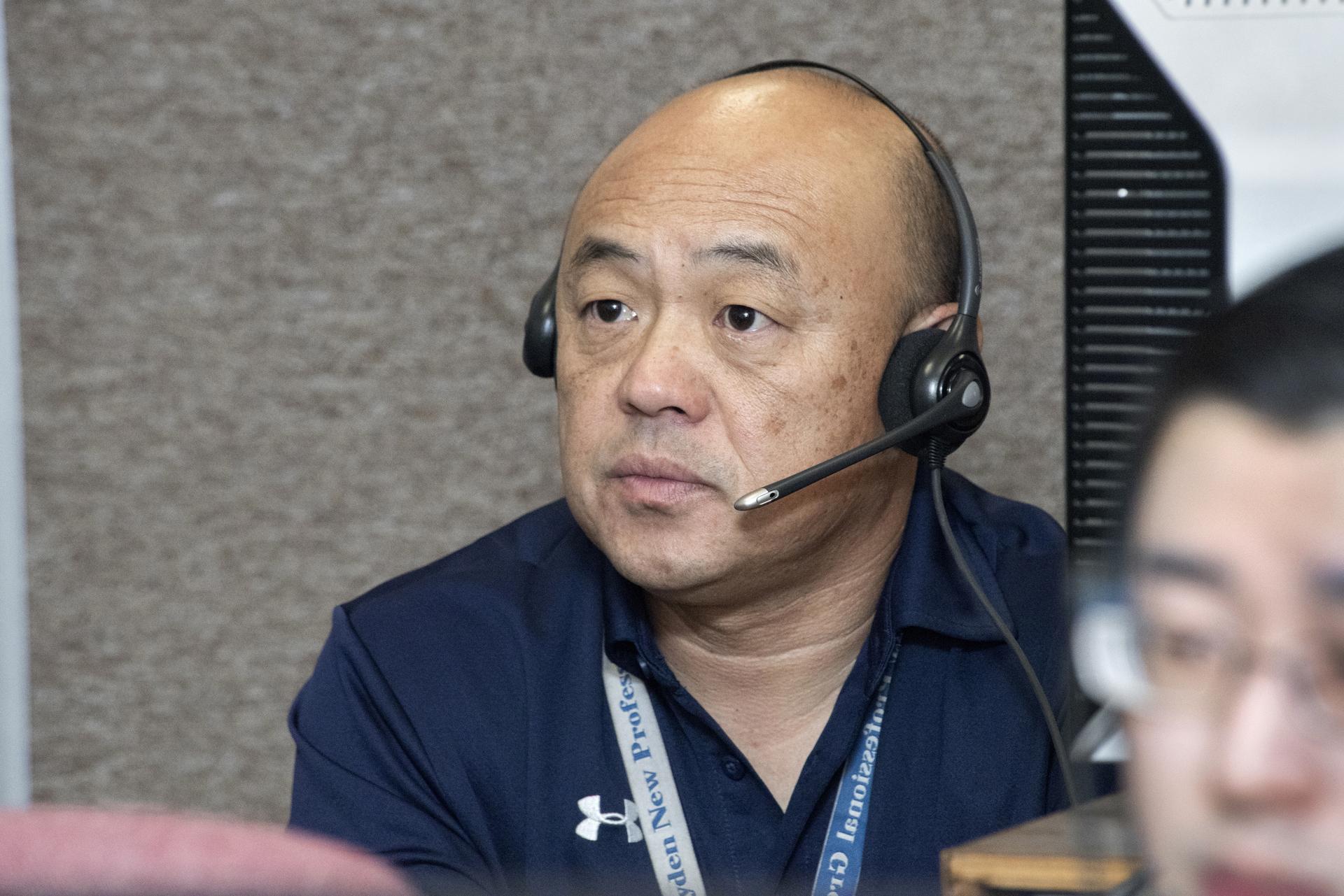 Cheng Moua, X-56A project manager, prepares for an X-56A mission in the control room.