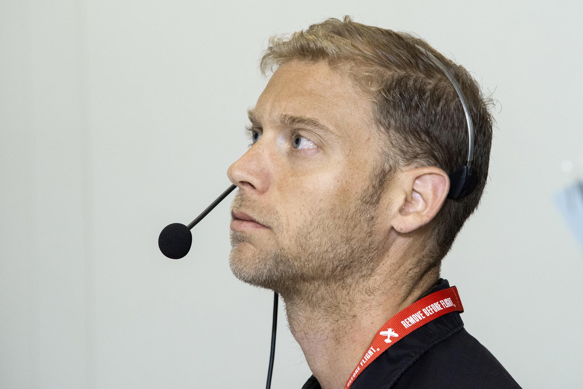 Chris Miller, who was test conductor on this X-56 A flight, prepares for the start of the mission.
