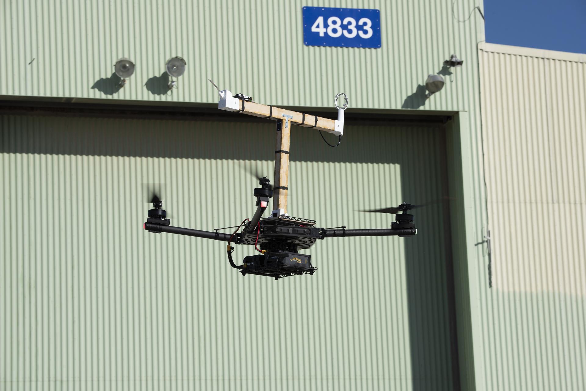 The Alta-X aircraft flies by the former space shuttle hangar at NASA’s Armstrong Flight Research Center in Edwards, California, as part of the Advanced Exploration of Reliable Operation at Low Altitudes: Meteorology, Simulation and Technology campaign. The campaign was at NASA Armstrong to study wind from the ground to 2,000 feet to provide data to assist future drones to safely land on rooftop hubs called vertiports and to potentially improve weather prediction.