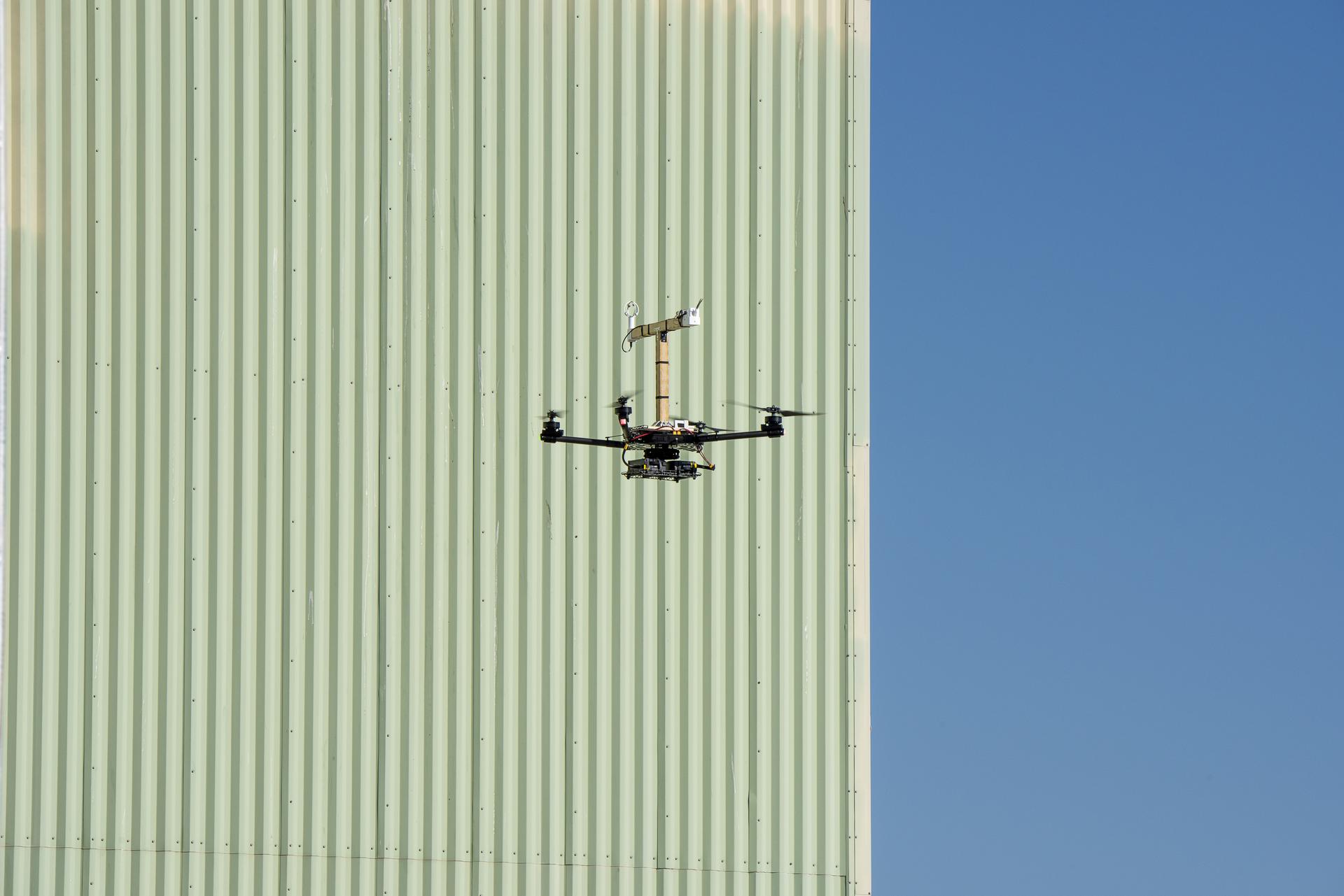 The Alta-X aircraft flies by the former space shuttle hangar at NASA’s Armstrong Flight Research Center in Edwards, California, as part of the Advanced Exploration of Reliable Operation at Low Altitudes: Meteorology, Simulation and Technology campaign. The campaign was at NASA Armstrong Flight to study wind from the ground to 2,000 feet to provide data to assist future drones to safely land on rooftop hubs called vertiports and to potentially improve weather prediction.