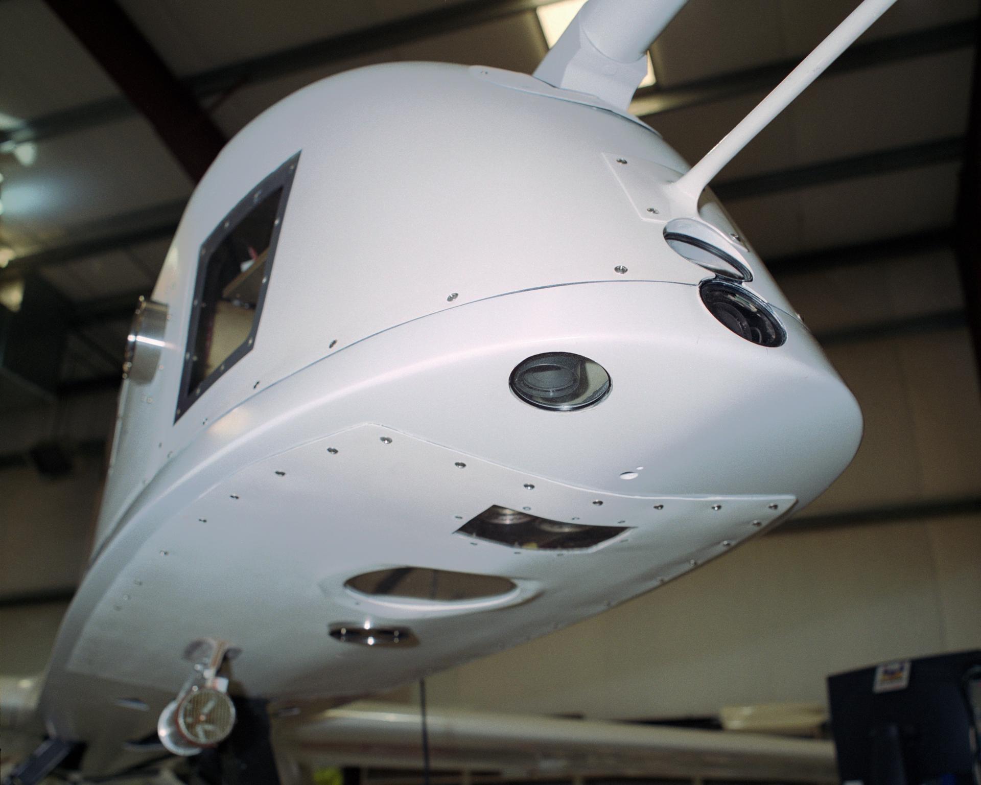 Looking ever so much like an alien spacecraft, the Altus II remotely piloted aircraft shows off some of the instruments and camera lenses mounted in its nose for a lightning study over Florida flown during the summer of 2002.