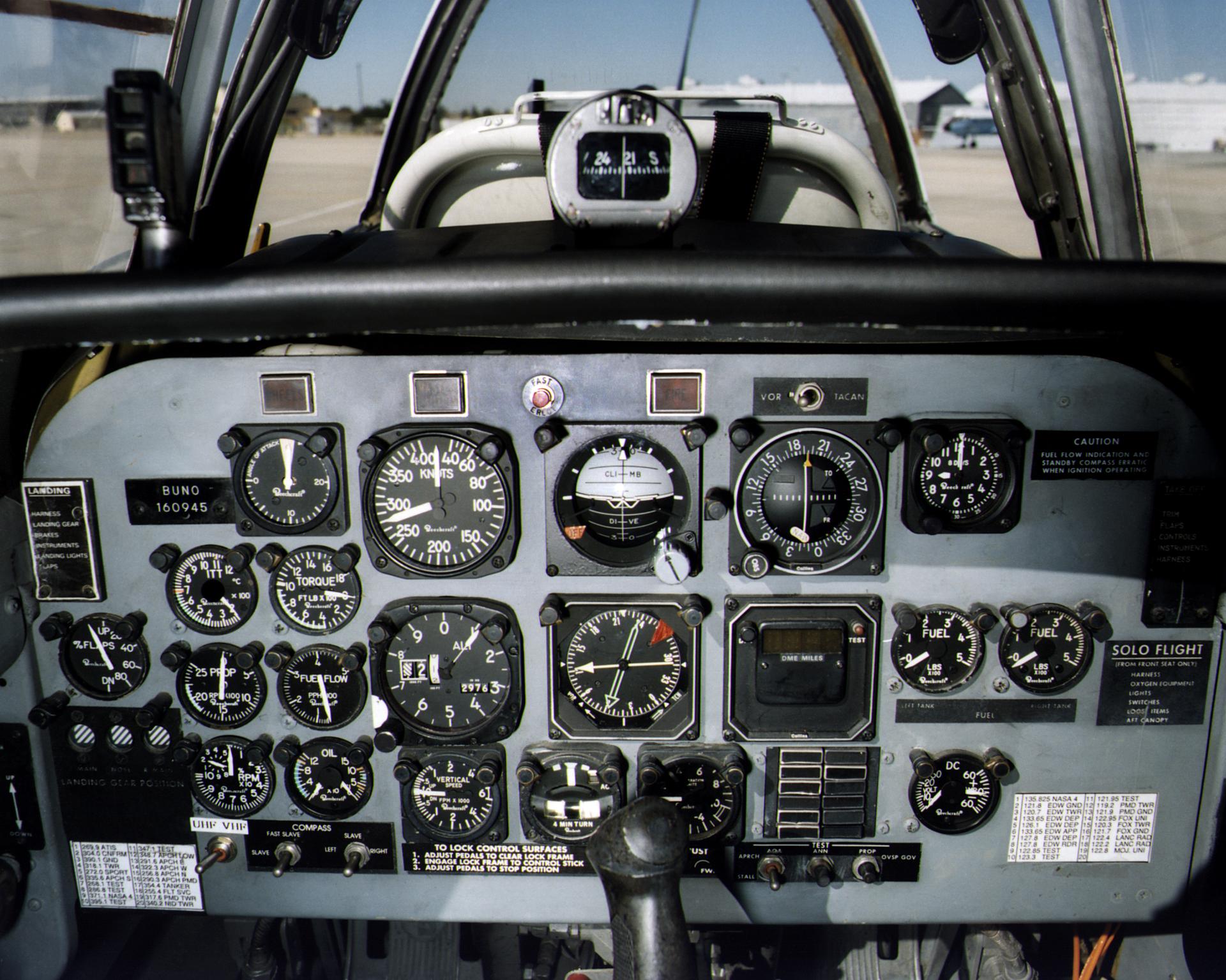 The back seat instrument panel on the NASA T-34C chase plane. In its role as a military trainer, the instructor pilot would ride in the back seat, while the student would be in the front seat. As a chase plane, the back seat would be occupied by a photographer. The aircraft was previously used at the Lewis Research Center in propulsion experiments involving turboprop engines, and was used as a chase aircraft at Dryden for smaller and slower research projects. Chase aircraft accompany research flights for photography and video purposes, and also as support for safety and research. At Dryden, the T-34 is used mainly for smaller remotely piloted vehicles which fly slower than NASA's F-18's, used for larger scale projects. This aircraft was returned to the U.S. Navy in May of 2002. The T-34C, built by Beech, carries a crew of 2 and is nicknamed the Mentor.