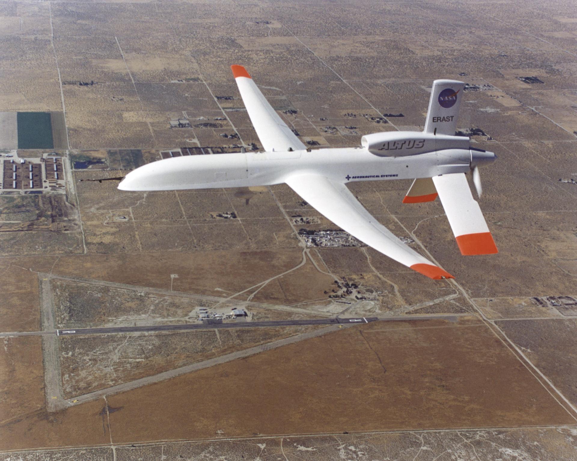 Altus II aircraft flying over southern California desert