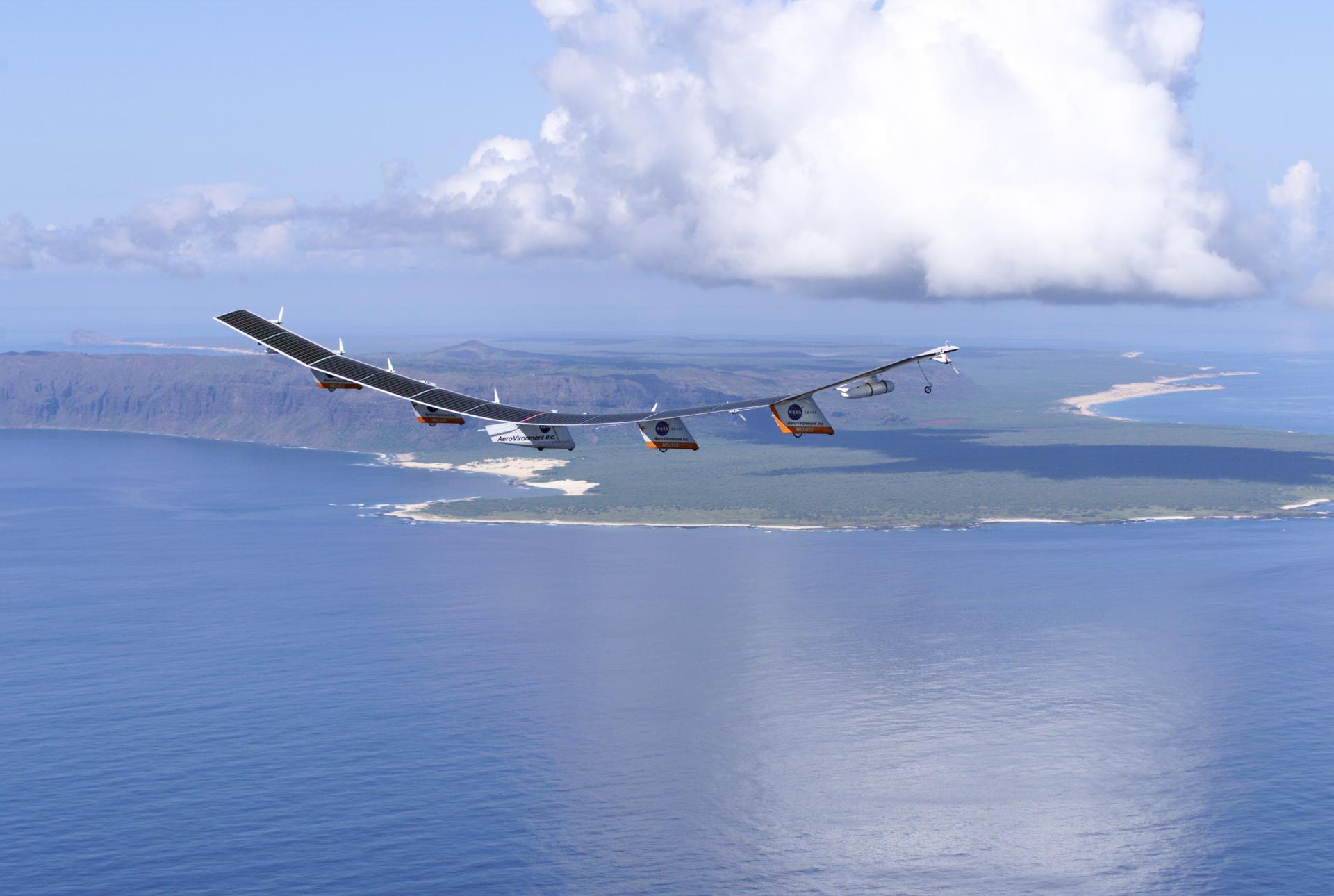 The first flight of a large aircraft to be powered by electric fuel cells began with a takeoff at 8:43 a.m. HST today from the Hawaiian island of Kauai. The Helios Prototype flying wing, built by AeroVironment, Inc., of Monrovia, Calif., as part of NASA's Environmental Research Aircraft and Sensor Technology (ERAST) program, used solar panels to power its 10 electric motors for takeoff and during daylight portions of its planned 20-hour shakedown flight. As sunlight diminishes, Helios will switch to a fuel cell system to continue flight into the night. The takeoff set the stage for a two-day Helios endurance flight in the stratosphere planned for mid-July. The Helios wing, spanning 247 feet and weighing about 2,400 pounds, is giving NASA and industry engineers confidence that remotely piloted aircraft will be able to stay aloft for weeks at a time, providing environmental monitoring capabilities and telecommunications relay services. Helios is an all-electric airplane. In addition to being non-polluting, Helios can fly above storms, and use the power of the sun to stay aloft during daylight. Key to the success of this type of aircraft is the ability to fly in darkness, using fuel cells when sunlight cannot furnish energy. Helios flew over the Navy's Pacific Missile Range Facility where favorable sun exposure and test ranges closed to other air traffic benefited the NASA research effort. In 2003 the aircraft was lost to a crash.