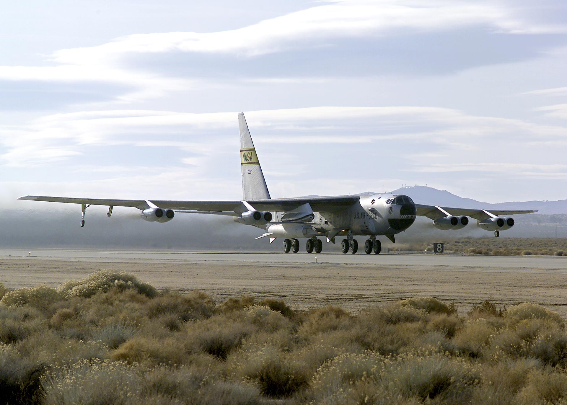 Hitching a ride on NASA’s B-52 mother ship, the X-43A scramjet performed a captive carry evaluation flight from Edwards Air Force Base, California, January 26, 2004