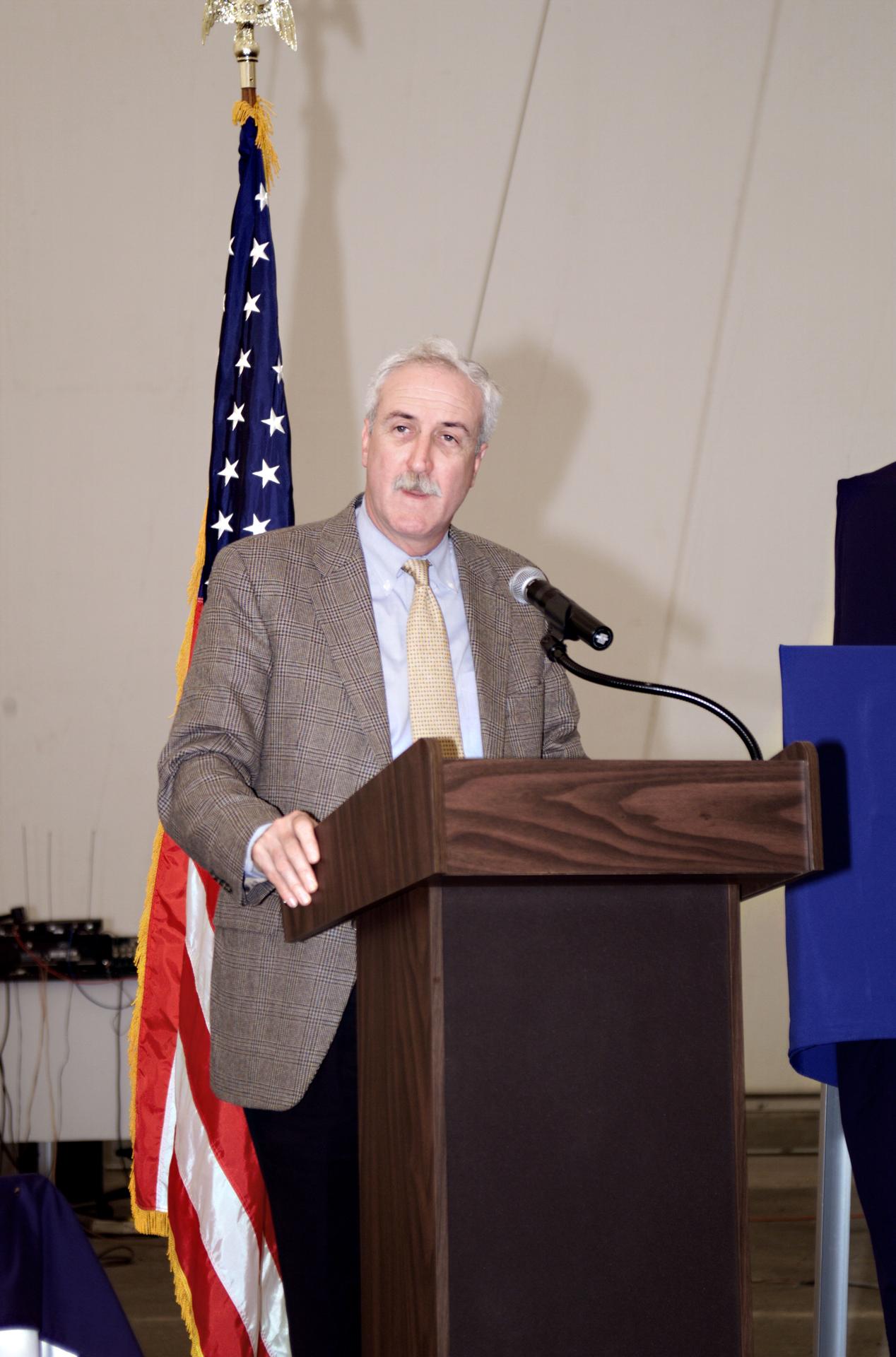 NASA Administrator Sean O’Keefe speaking at the AirSAR 2004 Mesoamerica hangar naming ceremony