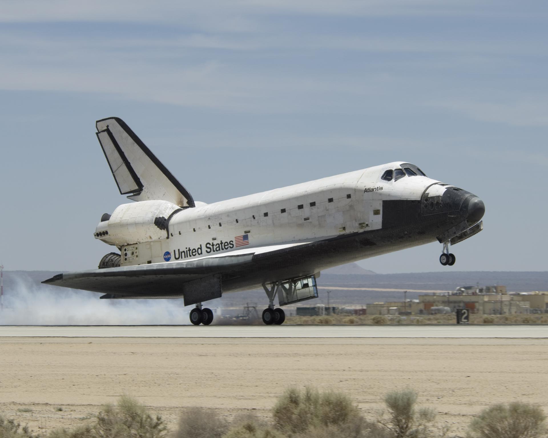 The Space Shuttle Atlantis touches down at Edwards AFB on June 22, 2007, to conclude International Space Station construction and supply mission STS-117.