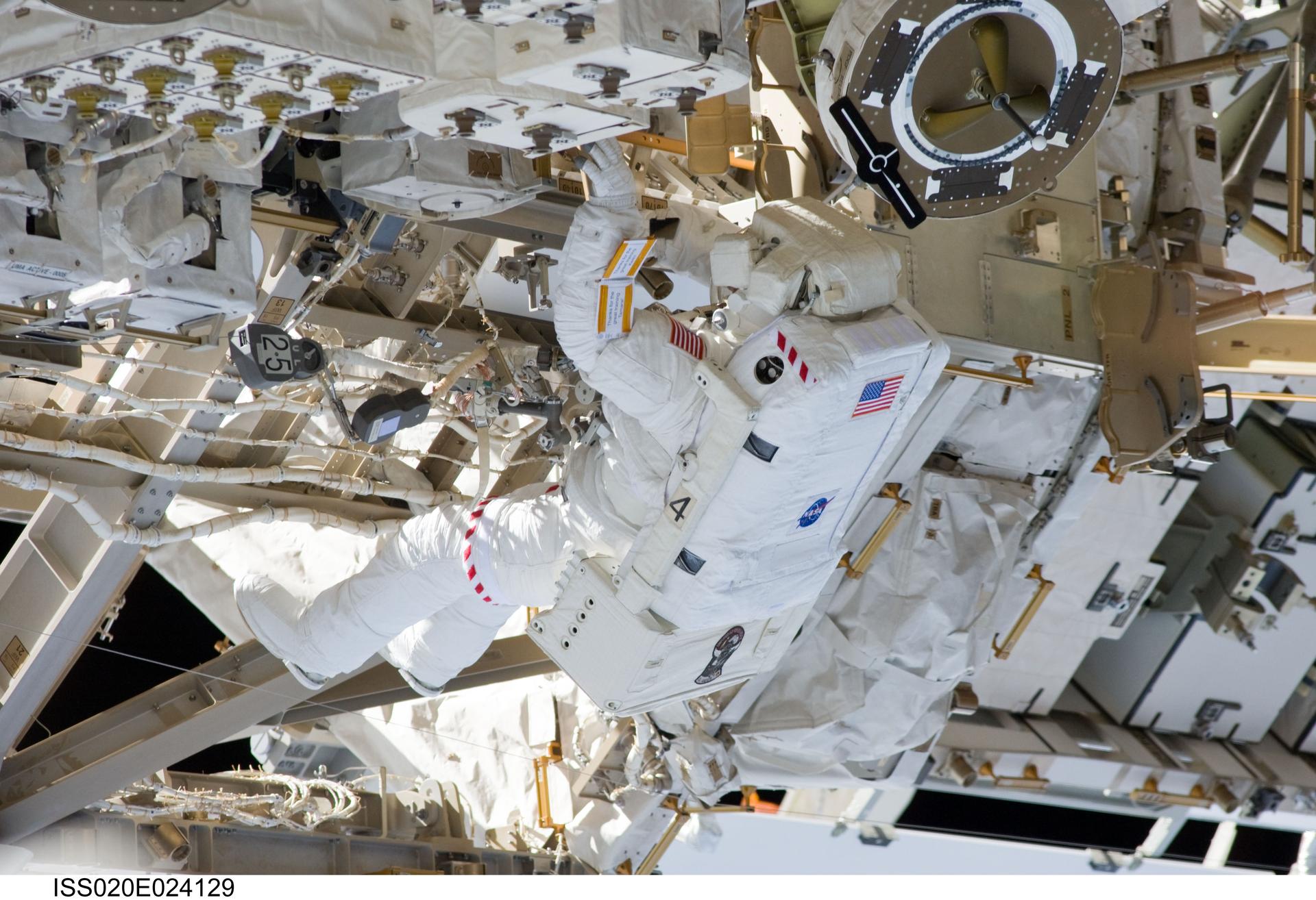 ISS020-E-024129 (22 July 2009) --- Astronaut Christopher Cassidy, STS-127 mission specialist, is pictured during the third spacewalk for the joint shuttle-station crewmembers currently aboard the International Space Station.