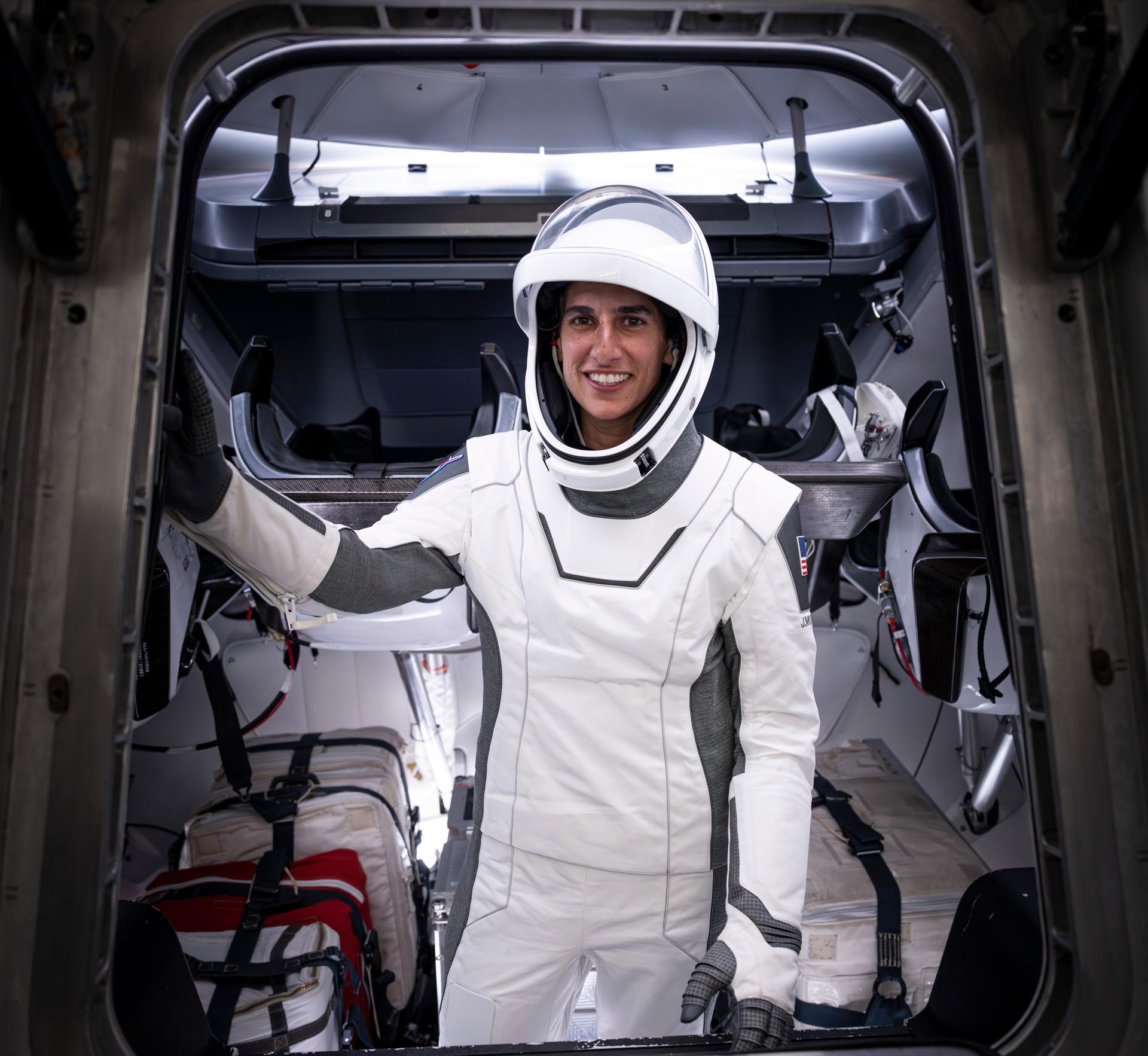 NASA's SpaceX Crew-7 crew in training at SpaceX in Hawthorne, California, before their mission to the International Space Station. Jasmin Moghbeli is photographed here. Imagery provided by SpaceX