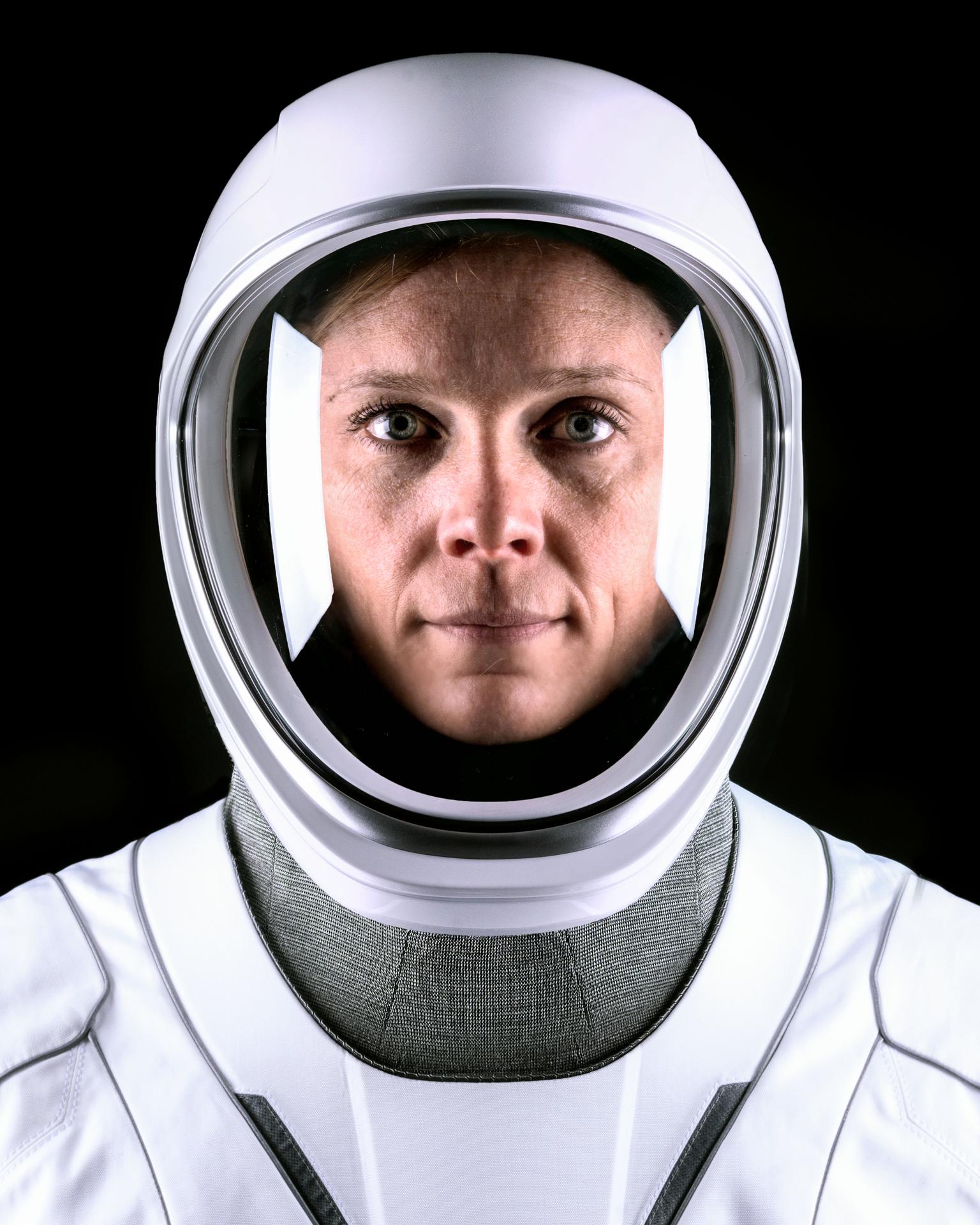 jsc2025e015860 (March 7, 2025) --- NASA’s SpaceX Crew-10 Pilot Nichole Ayers poses for a portrait in her pressure suit at the SpaceX facility in Hawthorne, California. Credit: SpaceX