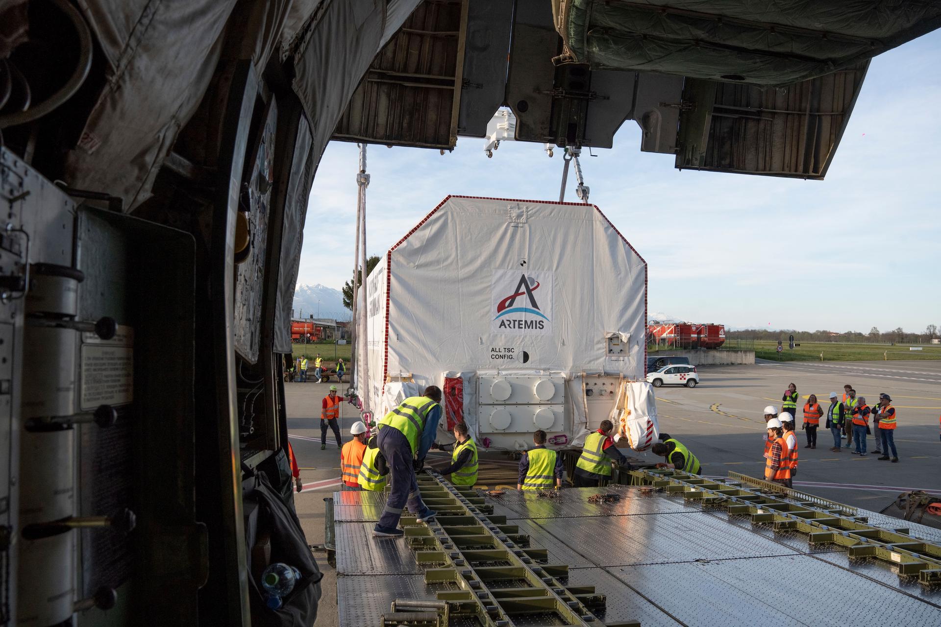 Gateway’s HALO (Habitation and Logistics Outpost) departs Italy en route to Arizona, where it will undergo final outfitting at Northrop Grumman’s facility in Gilbert ahead of its launch to lunar orbit. The module’s primary structure was fabricated by Thales Alenia Space in Turin.