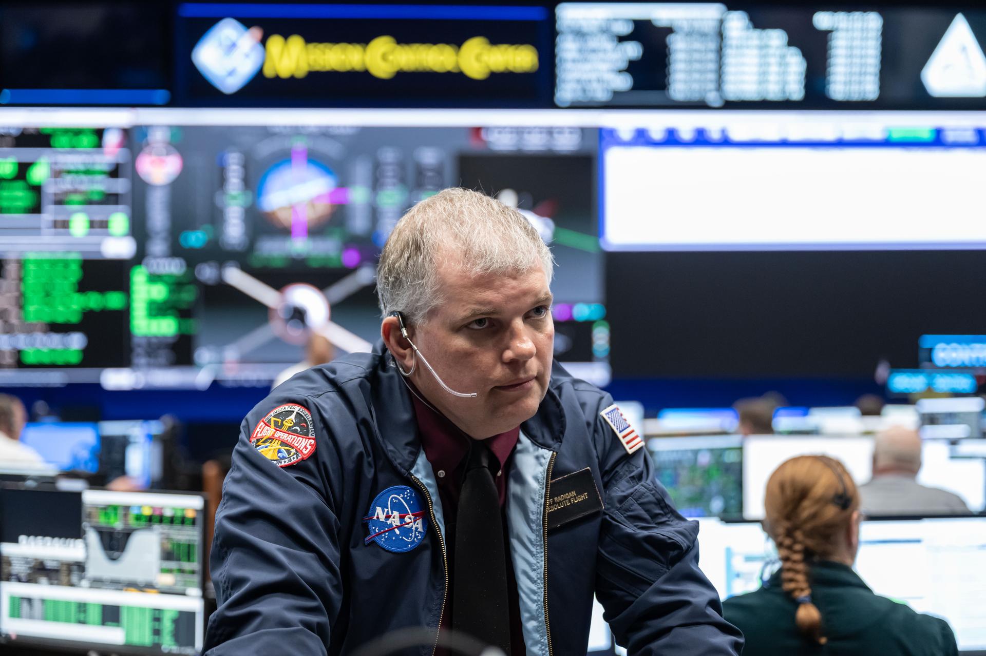 jsc2026e019217 (April 1, 2026) – Lead Artemis II Flight Director Jeff Radigan in the White Flight Control Room at the Mission Control Center at NASA’s Johnson Space Center in Houston. At the time of this photograph, a little over three hours into the mission, the Artemis II crew was conducting a manual piloting test called the proximity operations demonstration. During the demonstration, mission controllers monitored Orion as the astronauts transitioned the spacecraft to manual mode and piloted its flight path and orientation. This demonstration will provide performance data and operational experience that cannot be readily gained on the ground in preparation for critical rendezvous, proximity operations, docking, and undocking for future Artemis missions. Credit: NASA