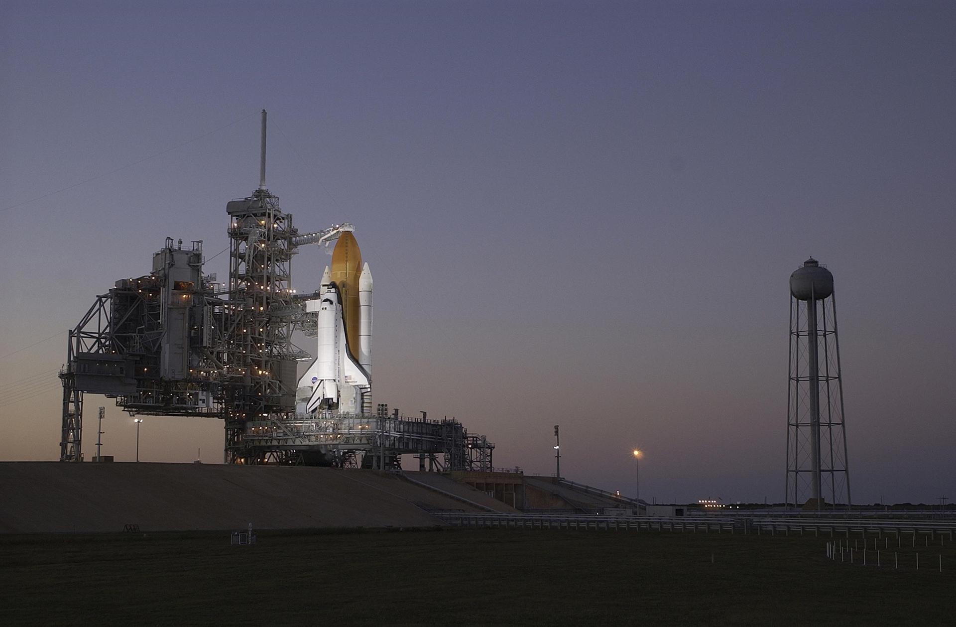 KENNEDY SPACE CENTER, FLA. - Bathed in light, Space Shuttle Endeavour sits on the pad prior to launch on mission STS-113 to the International Space Station. [Photo by Scott Andrews]