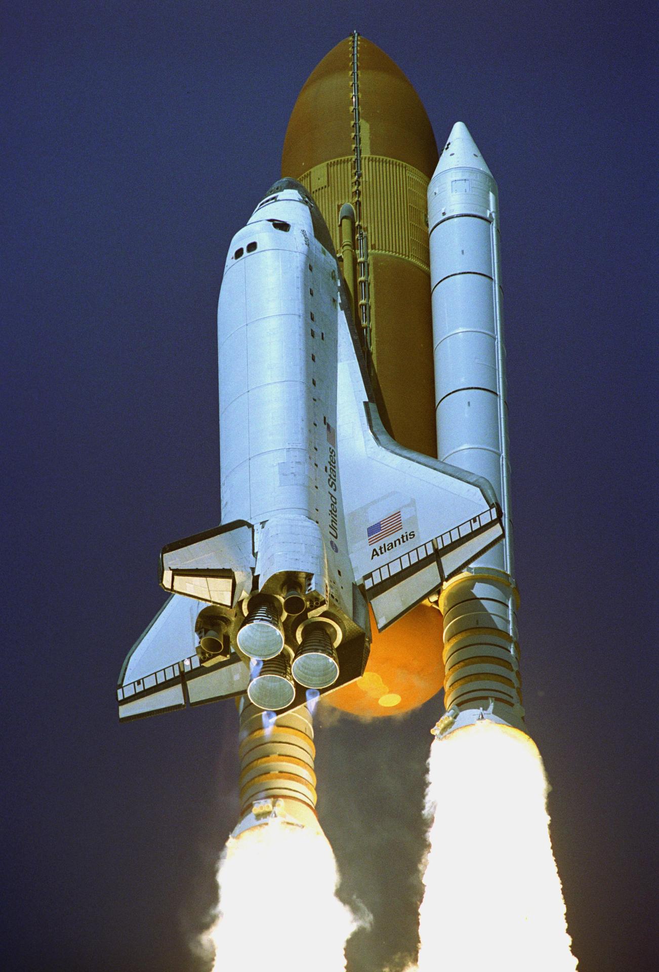 KENNEDY SPACE CENTER, FLA. - Twin columns of fire propel Space Shuttle Atlantis into a clear blue sky after liftoff from Launch Pad 39B. Atlantis is heading for a rendezvous with the International Space Station on mission STS-115. Liftoff was on-time at 11:14:55 a.m. EDT. After several launch attempts were scrubbed due to weather and technical concerns, this launch was executed perfectly. Mission STS-115 is the 116th space shuttle flight, the 27th flight for orbiter Atlantis, and the 19th U.S. flight to the International Space Station. During the mission, Atlantis' astronauts will deliver and install the 17.5-ton, bus-sized P3/P4 integrated truss segment on the station. The girder-like truss includes a set of giant solar arrays, batteries and associated electronics and will provide one-fourth of the total power-generation capability for the completed station. STS-115 is scheduled to last 11 days with a planned landing at KSC