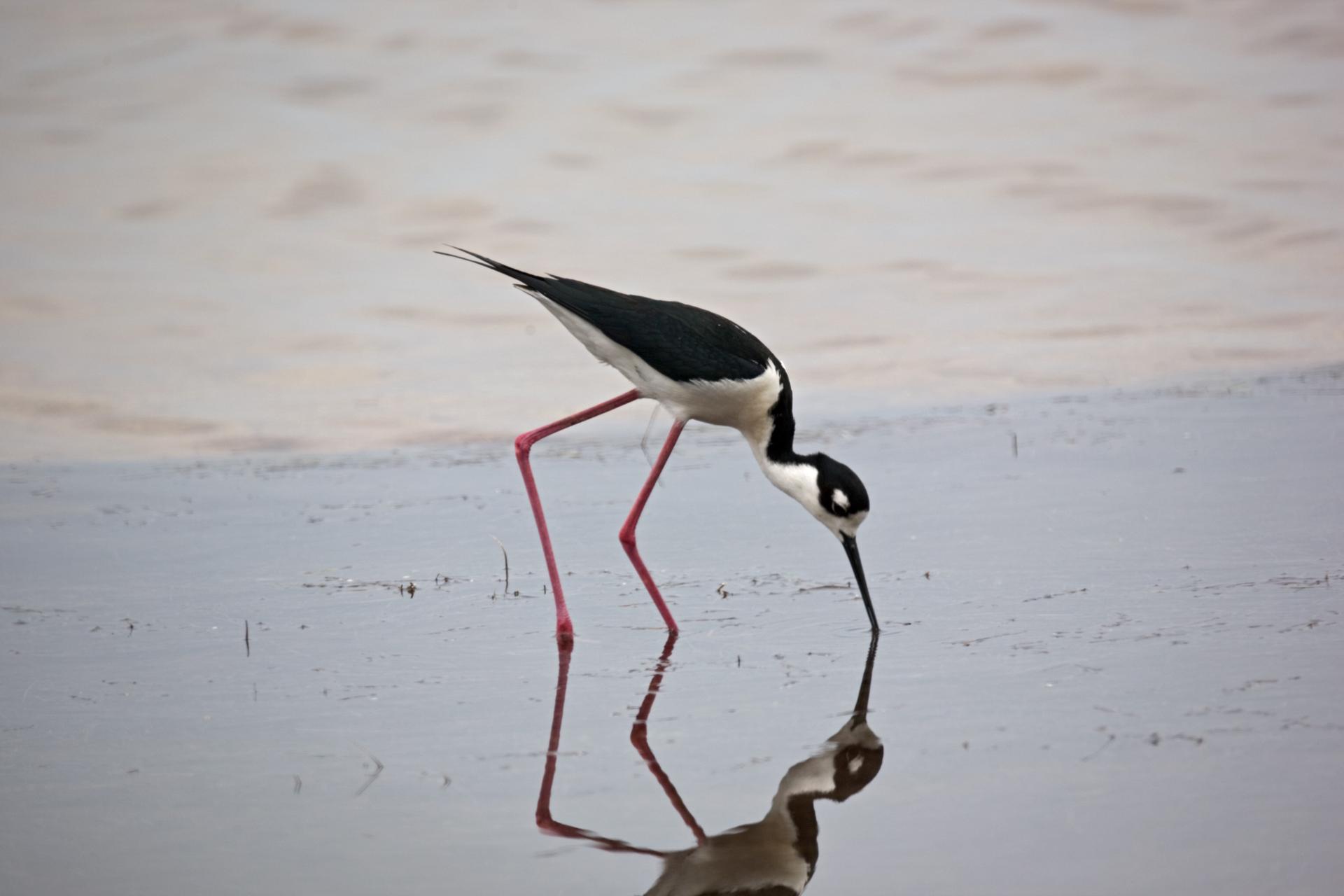 CAPE CANAVERAL, Fla. –– A black-necked stilt finds food in the shallow water at NASA's Kennedy Space Center in Florida. The species inhabits salt marshes and coastal bays in the East, ranging along the Atlantic Coast from Delaware and the Carolinas to northern South America. Kennedy shares a boundary with the Merritt Island National Wildlife Refuge that includes salt-water estuaries, brackish marshes, hardwood hammocks and pine flatwoods. The diverse landscape provides habitat for more than 310 species of birds, 25 mammals, 117 fishes and 65 amphibians and reptiles. Photo credit: NASA/Dimitri Gerondidakis