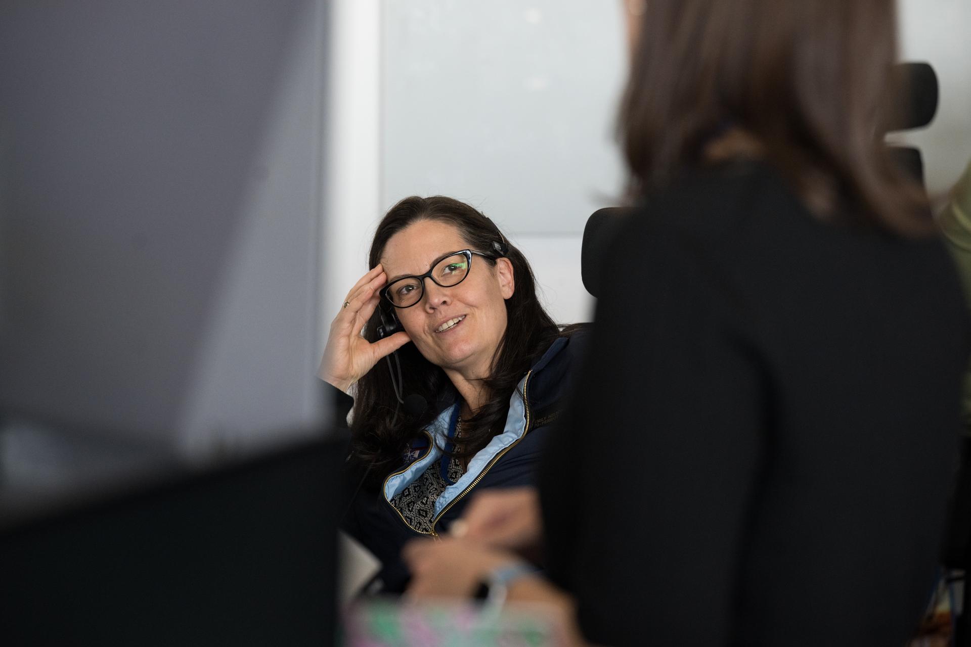 NASA's chief flight director, Emily Nelson, monitors the countdown during a dress rehearsal in preparation for the launch of a SpaceX Falcon 9 rocket carrying the company's Dragon spacecraft on NASA’s SpaceX Crew-10 mission with NASA astronauts Anne McClain and Nichole Ayers, JAXA (Japan Aerospace Exploration Agency) astronaut Takuya Onishi, and Roscosmos cosmonaut Kirill Peskov onboard, Sunday, March 9, 2025, in the control room of SpaceX’s HangarX at NASA’s Kennedy Space Center in Florida. NASA’s SpaceX Crew-10 mission is the tenth crew rotation mission of the SpaceX Dragon spacecraft and Falcon 9 rocket to the International Space Station as part of the agency’s Commercial Crew Program. McClain, Ayers, Onishi, and Peskov are scheduled to launch at 7:48 p.m. EDT on Wednesday, March 12, from Launch Complex 39A at the NASA's Kennedy Space Center. Photo Credit: (NASA/Aubrey Gemignani)