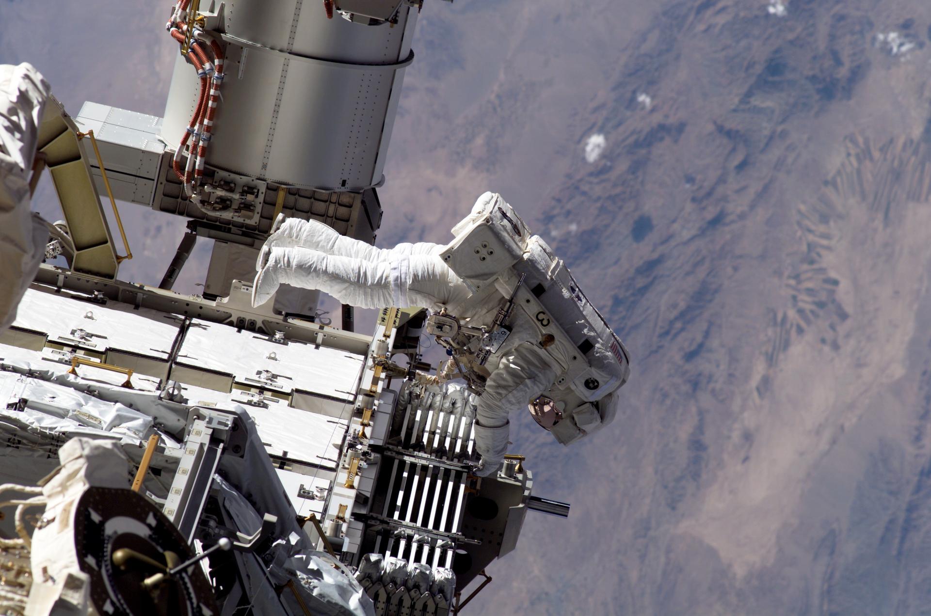 S115-E-06214 (15 Sept. 2006) --- Astronaut Heidemarie M. Stefanyshyn-Piper, STS-115 mission specialist, participates in her second spacewalk this week and the second one of her career as extravehicular work wraps up for the Atlantis crewmembers and their colleagues aboard the International Space Station. The STS-115 and Expedition 13 crewmembers shared various tasks for three spacewalks this week, marking the resumption of construction on the orbital outpost.