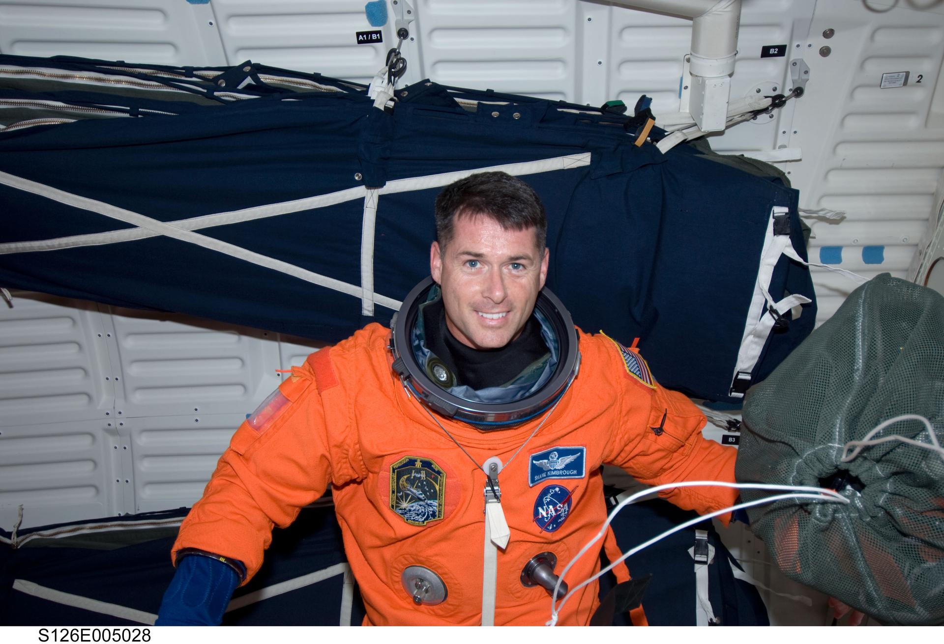 S126-E-005028 (14 Nov. 2008) --- Astronaut Shane Kimbrough, STS-126 mission specialist, attired in his shuttle launch and entry suit, is pictured on the middeck of Space Shuttle Endeavour during post launch activities.