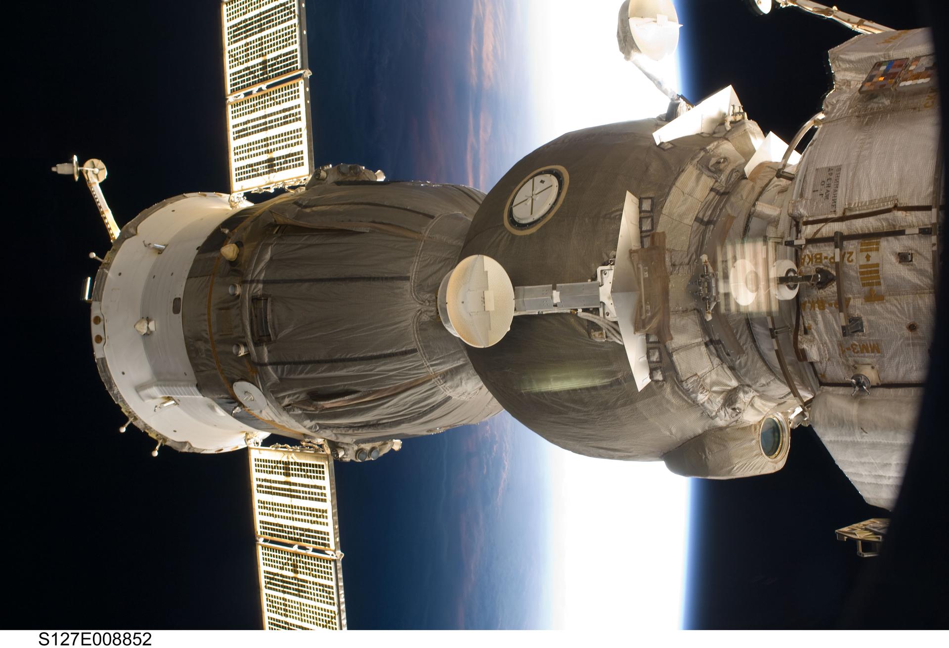 S127-E-008852 (25 July 2009) --- One of two Soyuz spacecrafts docked with the International Space Station is featured in this image photographed by a crew member aboard the station while Space Shuttle Endeavour (STS-127) remains docked with the station.