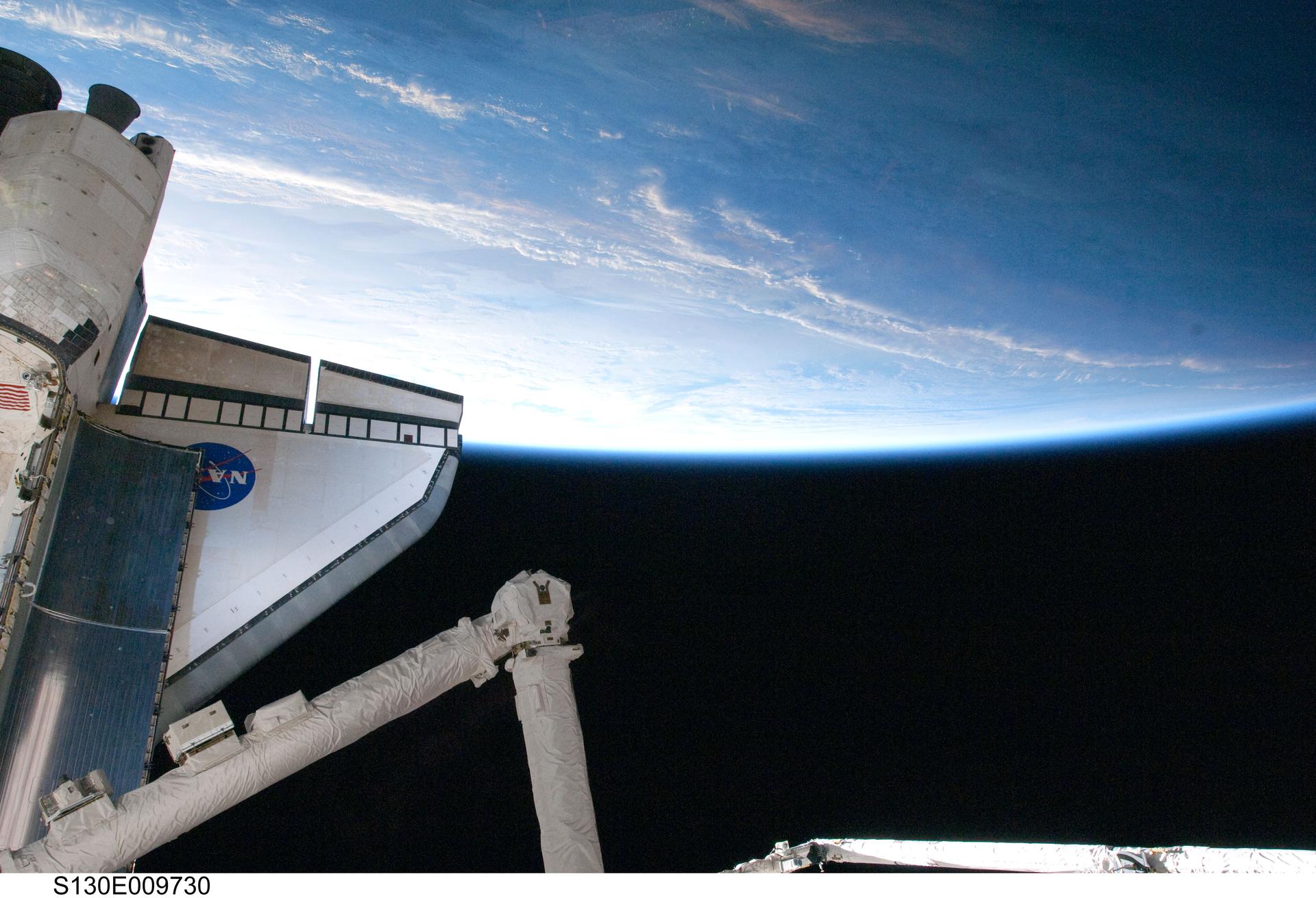 S130-E-009730 (17 Feb. 2010) --- Backdropped by Earth?s horizon and the blackness of space, a portion of space shuttle Endeavour is featured in this image photographed by an STS-130 crew member while Endeavour remains docked with the International Space Station.
