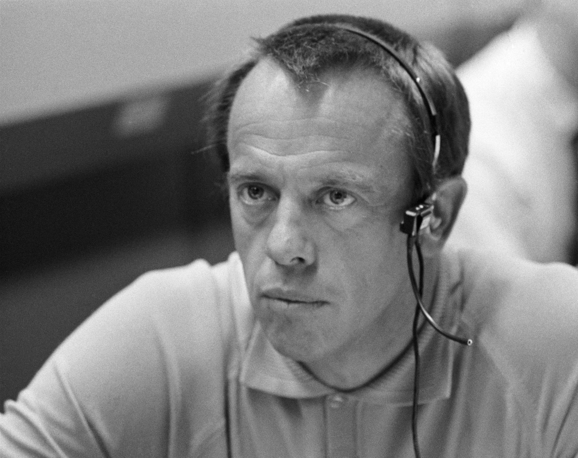 S70-34904 (14 April 1970) --- Astronaut Alan B. Shepard Jr., prime crew commander of the Apollo 14 mission, monitors communications between the Apollo 13 spacecraft and Mission Control Center. He is seated at a console in the Mission Operations Control Room of the MCC, Manned Spacecraft Center. The main concern of the moment was action taken by the three Apollo 13 crewmen - astronauts James A. Lovell Jr., John L. Swigert Jr. and Fred W. Haise Jr. - to make corrections inside the spacecraft following discovery of an oxygen cell failure several hours earlier.