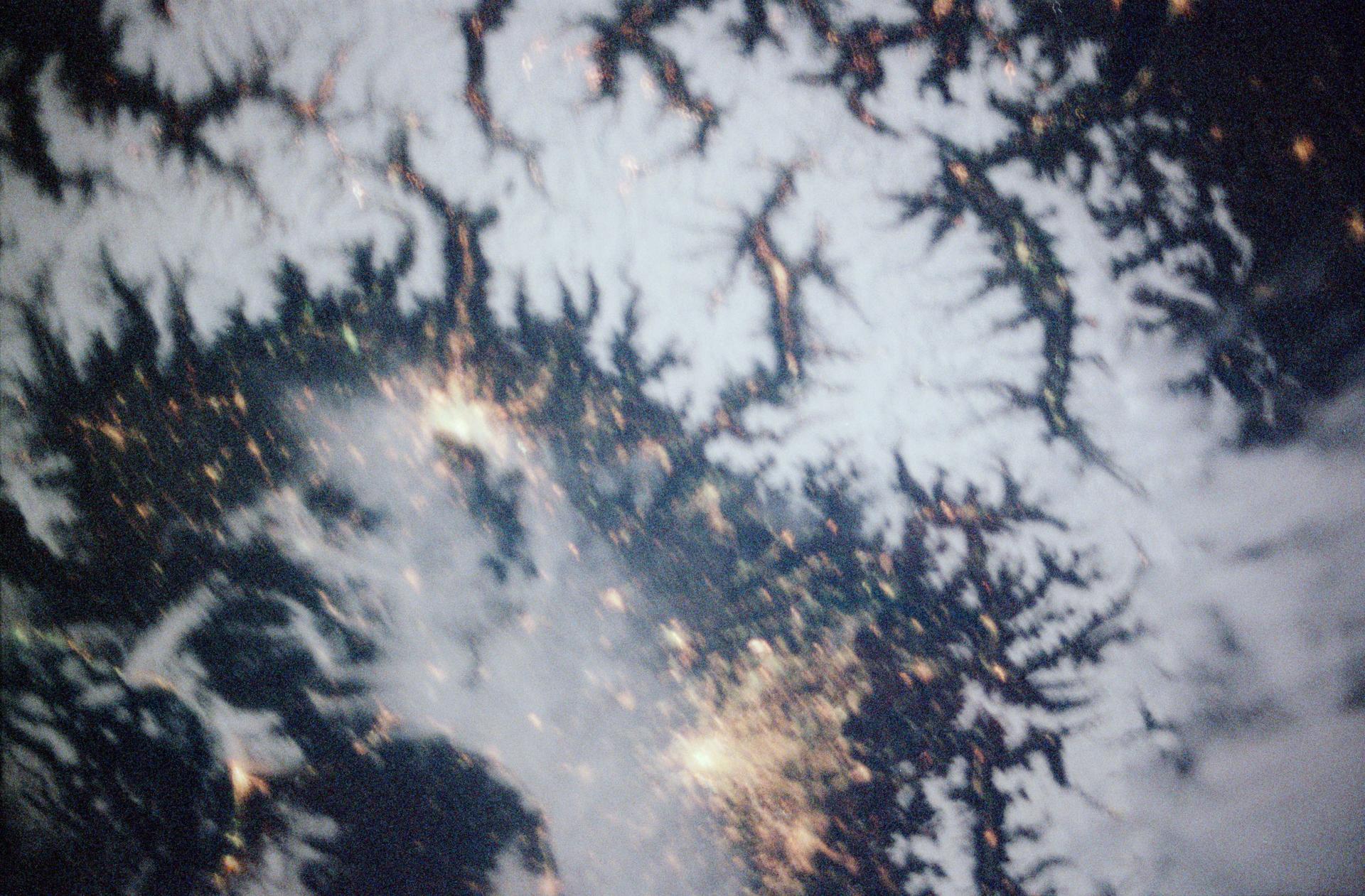 STS097-355-011 (30 Nov. -11 Dec. 2000) --- This vertical scene showing Torino and Milano, Italy, at night, was photographed with a 35mm camera by one of the STS-97 crew members aboard the Earth-orbiting Space Shuttle Endeavour. The night lights of Torino and Milano (two larger illuminated areas) are visible in the view, which covers the western end of the Po River Valley. Torino is the bright spot slightly left of center and Milano is the larger bright spot towards the bottom center of the image. The deeply eroded flanks of the snow-covered Alps Mountains (serrated-looking, light-colored terrain top half of the image) is visible north of the two large cities. Several mountain passes that connect the Po River Valley with France and Switzerland can be identified by the string of lights in the narrow, linear valleys. A translucent-looking cloud (bottom center) somewhat obscures the nighttime landscape south of Torino and Milano. The northwest coast of Italy, including the Italian city of Genova, can be identified in the lower left corner of the image. This photography was taken by astronauts using high speed film and long exposure on a night with a full moon illuminating the surface of the Earth.