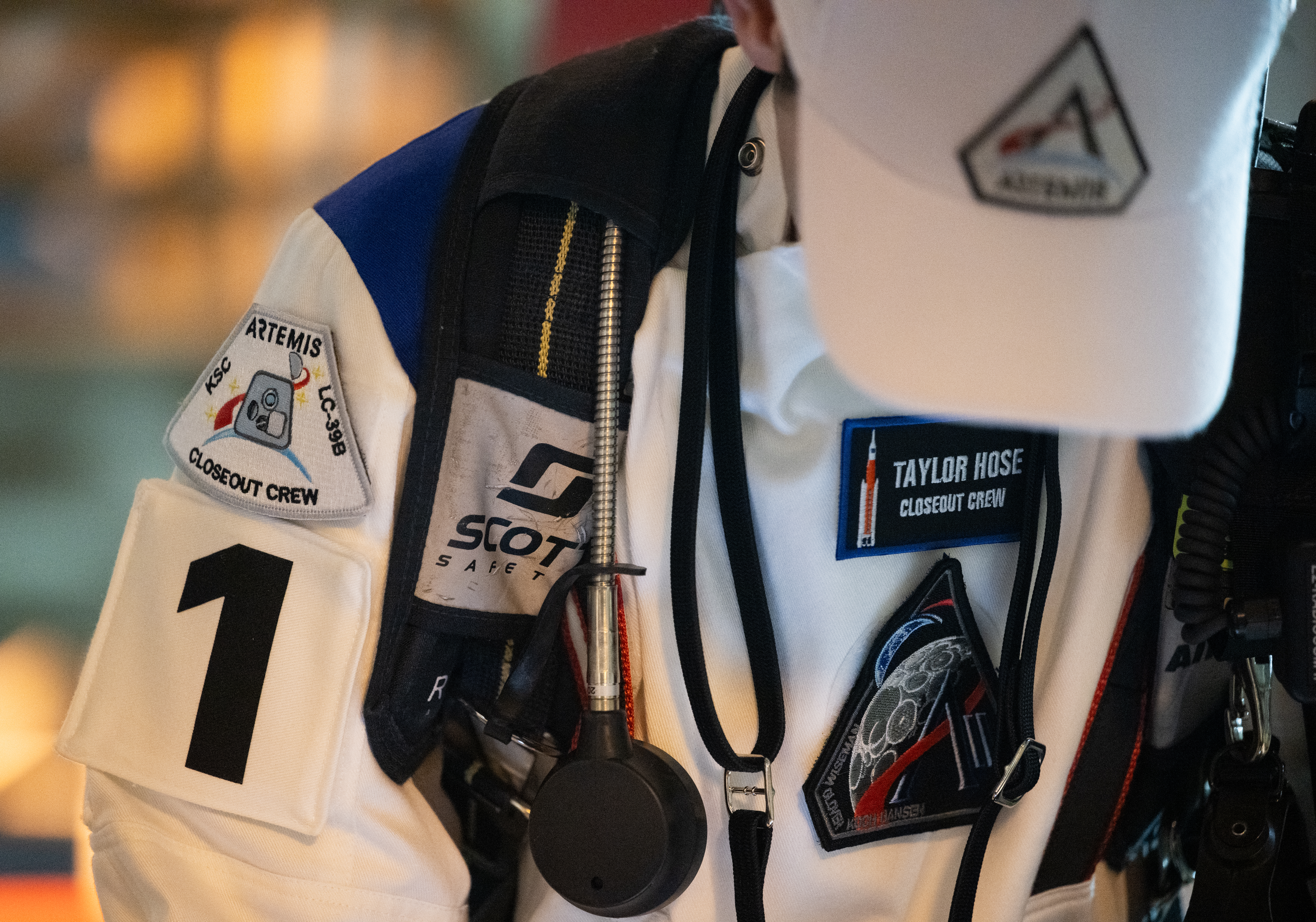 Taylor Hose, Closeout Crew lead, is seen as he prepares for the arrival of Artemis II crewmembers NASA astronauts Reid Wiseman, commander; Victor Glover, pilot; Christina Koch, mission specialist; and CSA (Canadian Space Agency) astronaut Jeremy Hansen, mission specialist; at the 275-foot level of the mobile launcher to board their Orion spacecraft atop NASA’s Space Launch System rocket during the Artemis II countdown demonstration test, Saturday, Dec. 20, 2025, inside the Vehicle Assembly Building at NASA’s Kennedy Space Center in Florida. For this operation, the Artemis II crew and launch teams are simulating the launch day timeline including suit-up, walkout, and spacecraft ingress and egress. Through the Artemis campaign, NASA will send astronauts to explore the Moon for scientific discovery, economic benefits, and to build the foundation for the first crewed missions to Mars, for the benefit of all.