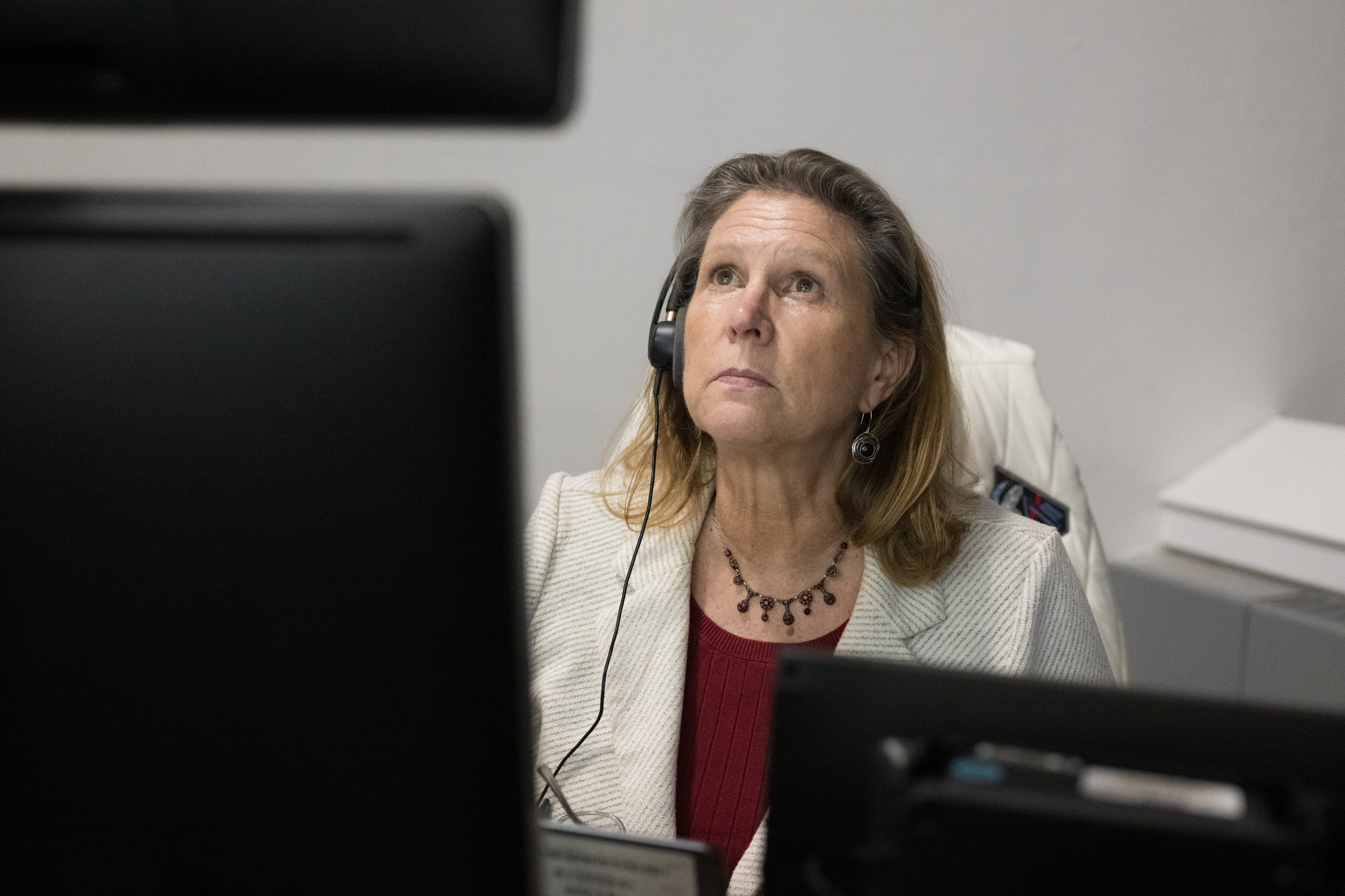 Lori Glaze, acting associate administrator for NASA's Exploration Systems Development Mission Directorate monitors the progress of a Countdown Demonstration Test with Artemis II crewmembers NASA astronauts Reid Wiseman, commander; Victor Glover, pilot; Christina Koch, mission specialist; and CSA (Canadian Space Agency) astronaut Jeremy Hansen, mission specialist onboard their Orion spacecraft from Firing Room 2 of the Rocco A. Petrone Launch Control Center, Saturday, Dec. 20, 2025, at NASA’s Kennedy Space Center in Florida. For this operation, the Artemis II crew and launch teams are simulating the launch day timeline including suit-up, walkout, and spacecraft ingress and egress. Through the Artemis campaign, NASA will send astronauts to explore the Moon for scientific discovery, economic benefits, and to build the foundation for the first crewed missions to Mars, for the benefit of all.