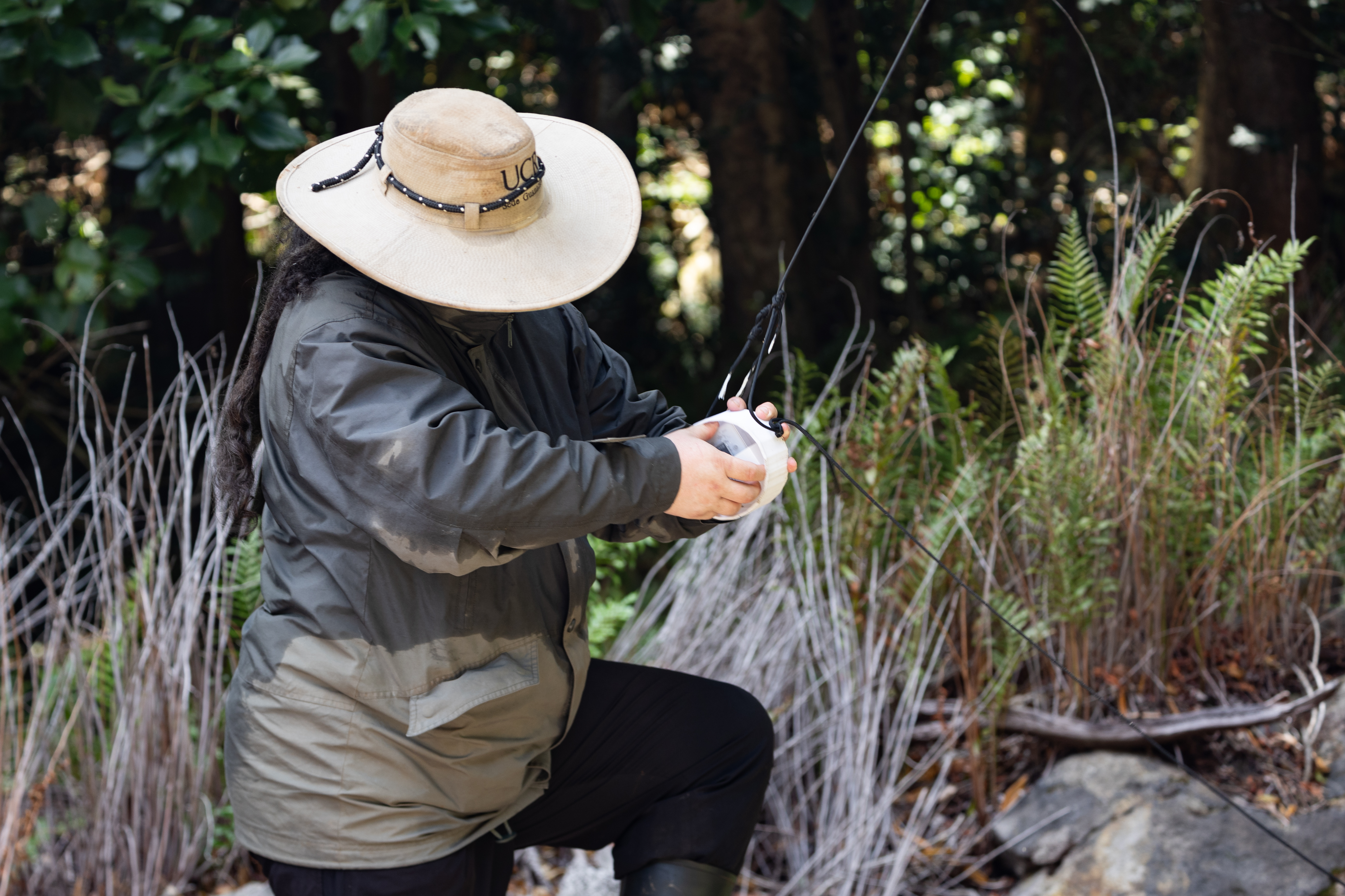 Ernesto Corrales, a member of the CRATER team, gathers data from a trace gas sensor in the forest of Rincon de la Vieja National Park, Costa Rica. CRATER ecologist Joshua Fisher and his team placed sensors at locations across the forest to measure emissions, in an effort to understand how vegetation responds to elevated levels of carbon dioxide.