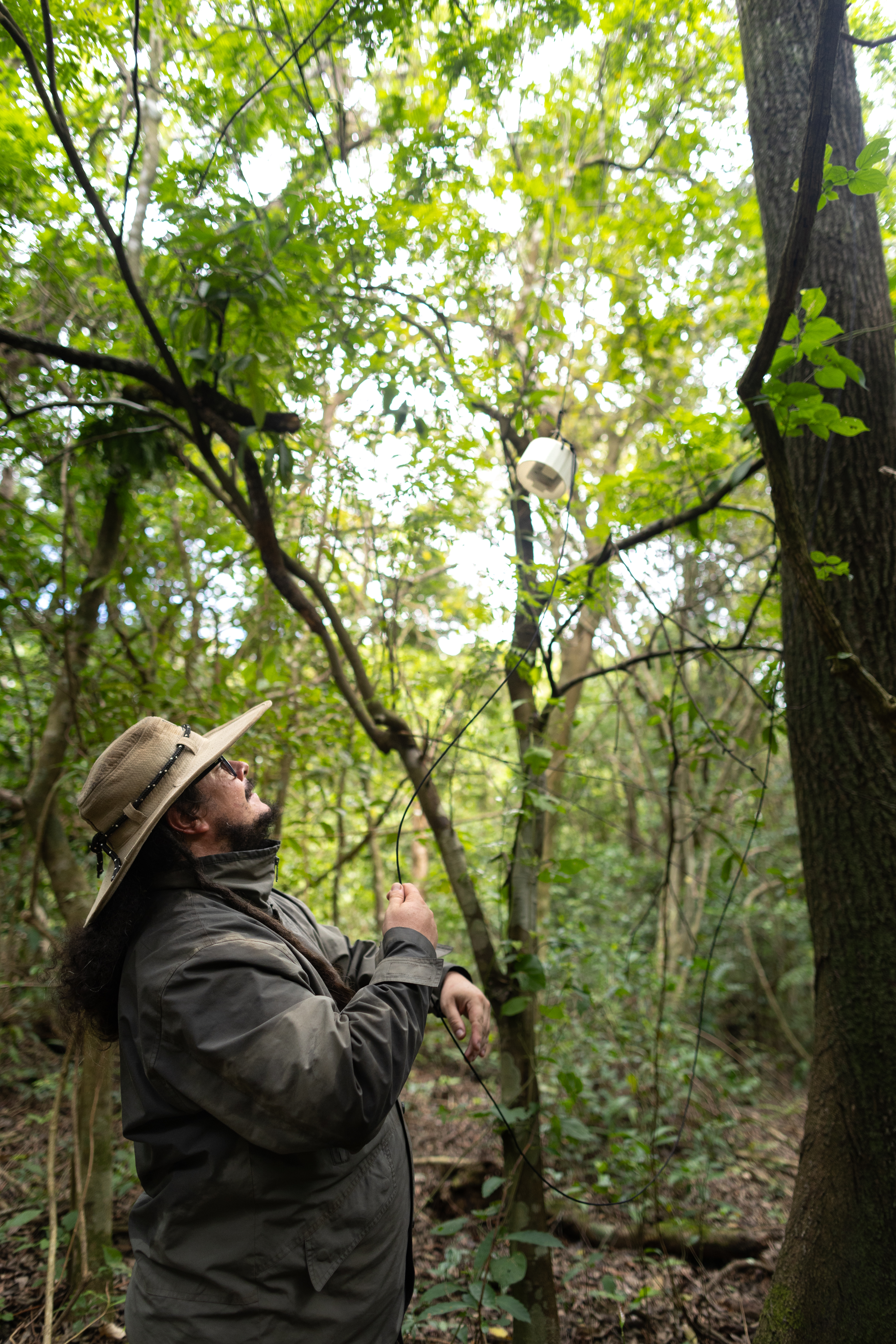 Ernesto Corrales Pulls Trace Gas Sensor from Canopy