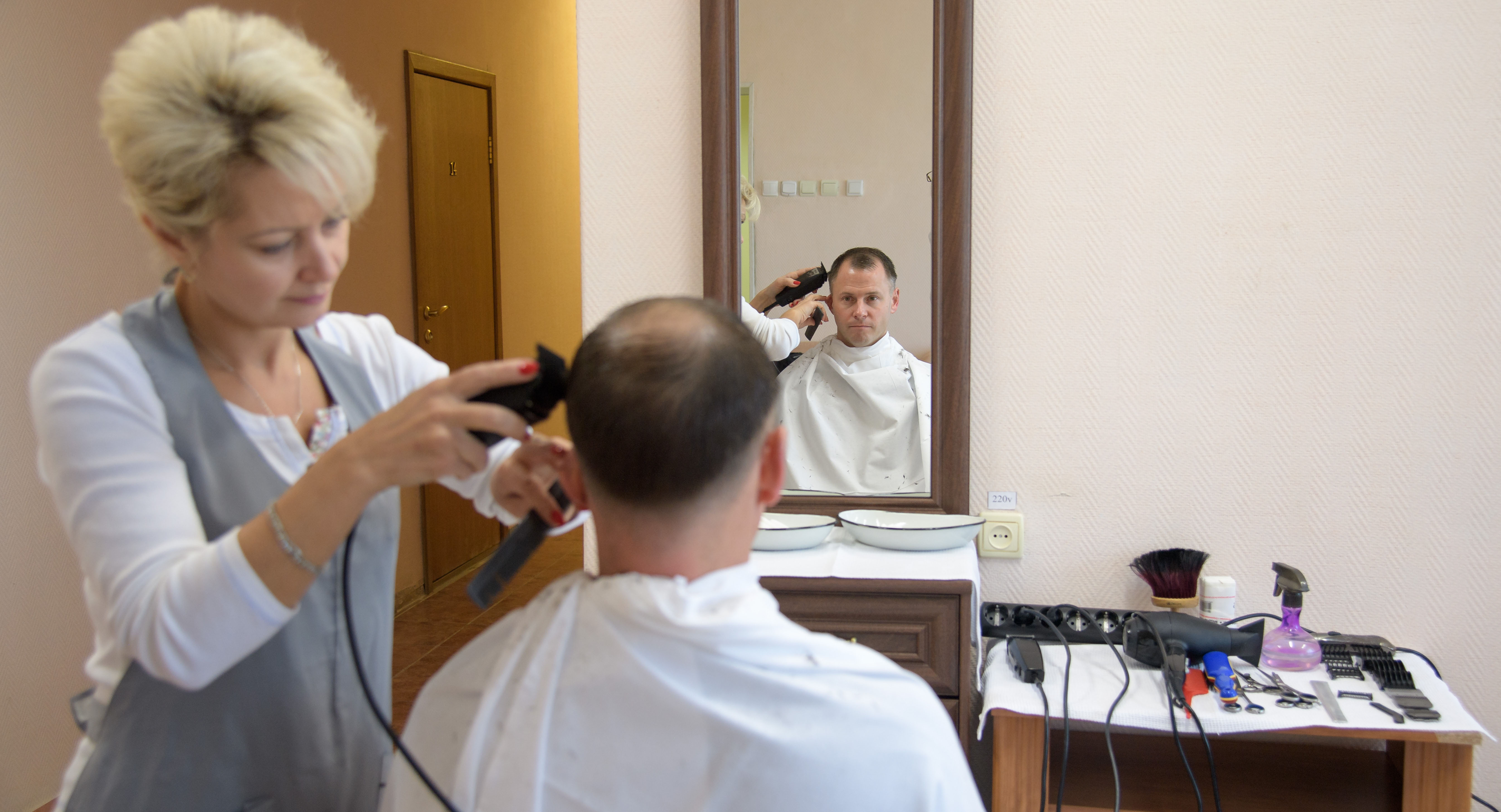 Expedition 57 Flight Engineer Nick Hague of NASA gets his hair cut, Tuesday, Oct. 9, 2018 at the Cosmonaut Hotel in Baikonur, Kazakhstan. Hague and Expedition 57 Flight Engineer Alexey Ovchinin of Roscosmos are scheduled to launch onboard a Soyuz rocket October 11 and will spend the next six months living and working aboard the International Space Station.
