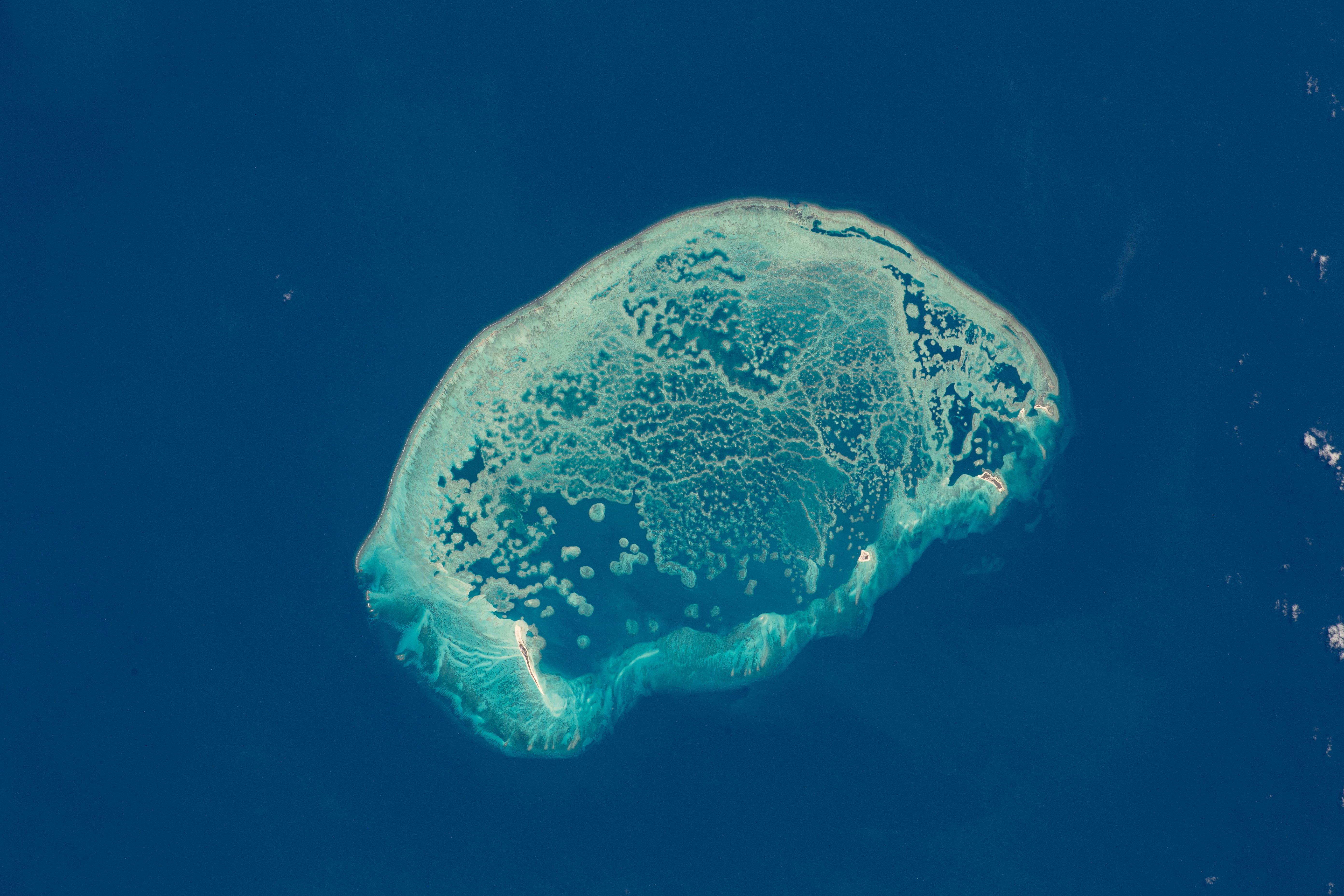 iss070e101440 (Feb. 24, 2024) -- Off the northern coast of Yucatan, Mexico, Scorpion Reef was pictured from the International Space Station as it orbited 260 miles above. The largest in the southern Gulf of Mexico, five main vegetated islands stand among it.