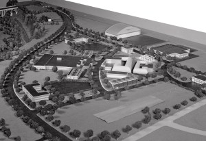 Model of the NACA's Aircraft Engine Research Laboratory (AERL), then under construction. The AWT is visible near the center of the image (1942).
