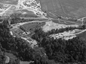 The future site for the Rocket Engine Test Facility (RETF) was in the woods at the lower right, far away from the main campus (1948).
