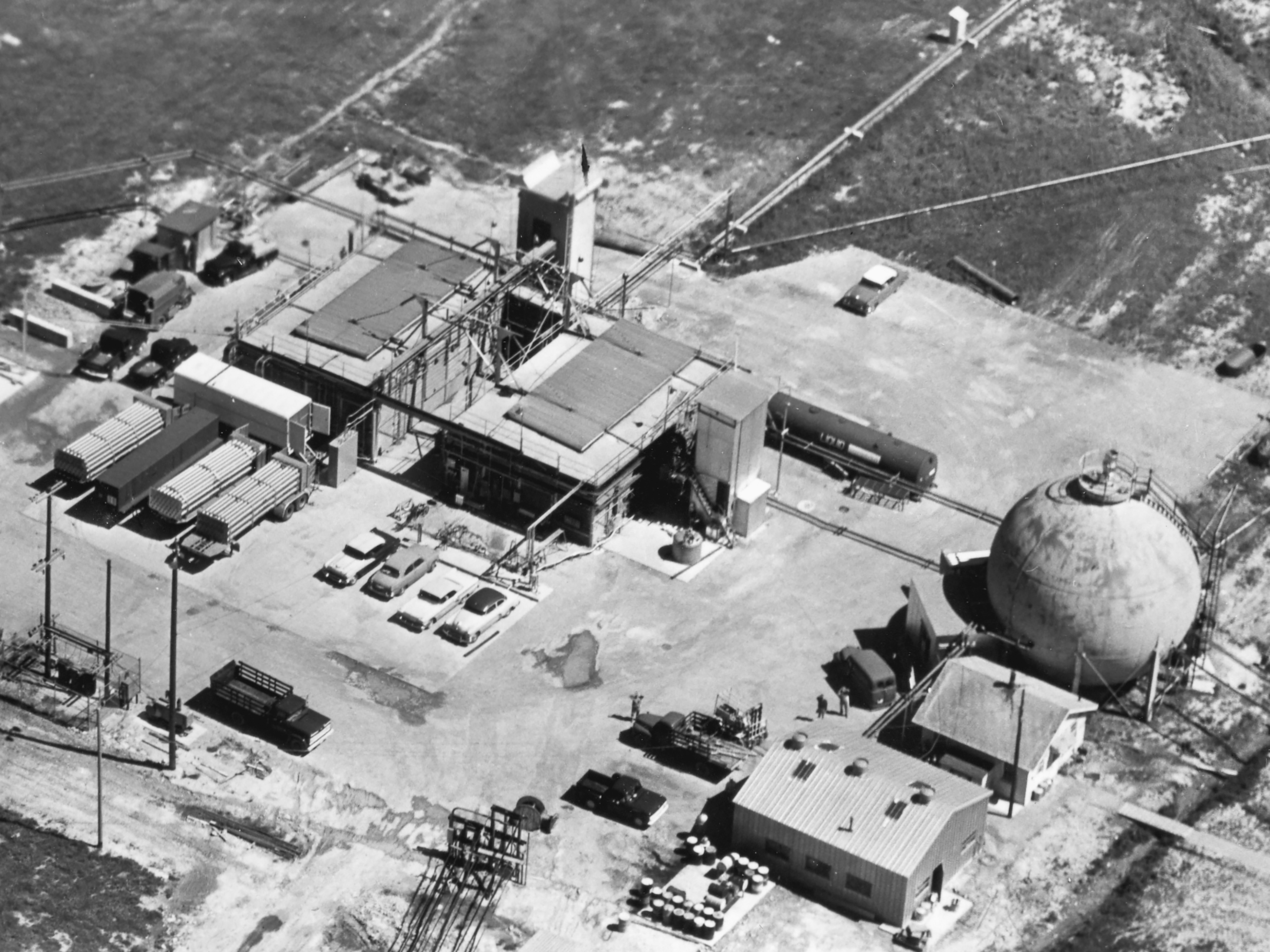 Researchers used J Site's J-4 test stand (at the rear of the building) to study issues related to the loading of propellants and insulation systems for cryogenic tanks (6/16/1961).