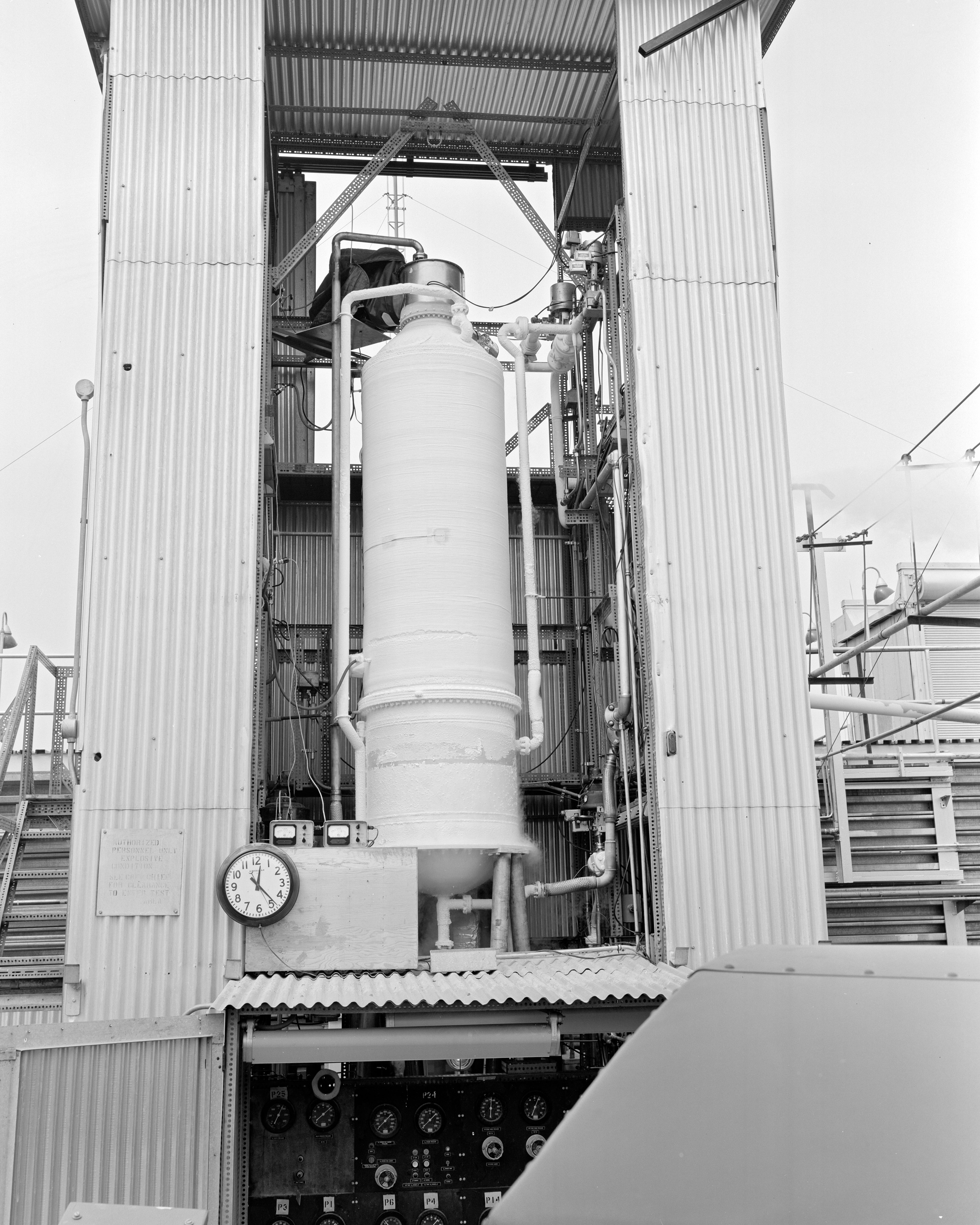 A propellant tank installed in the semi-enclosed J-4 test stand. The researchers measured the insulation's effectiveness by the length of time before evaporation (4/5/1962).