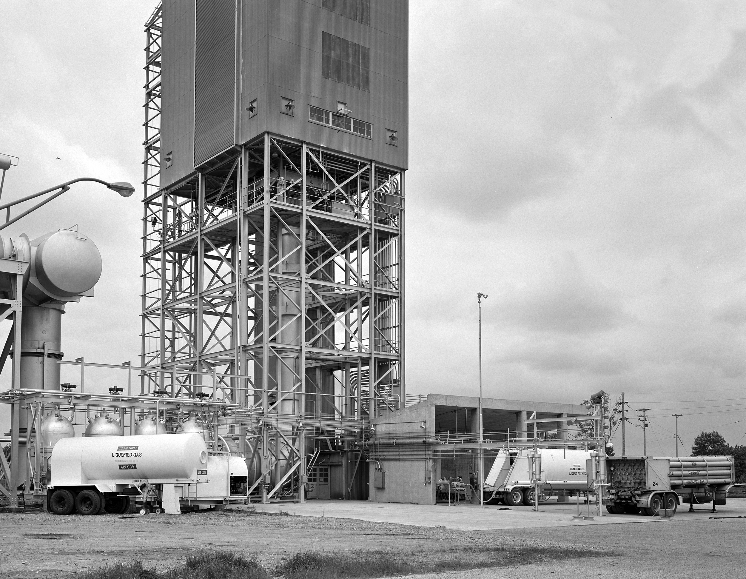 Truck trailers and railroad dewars supplied the B-1 test stand with liquid hydrogen, nitrogen, and other chemicals required for testing (5/25/1964).