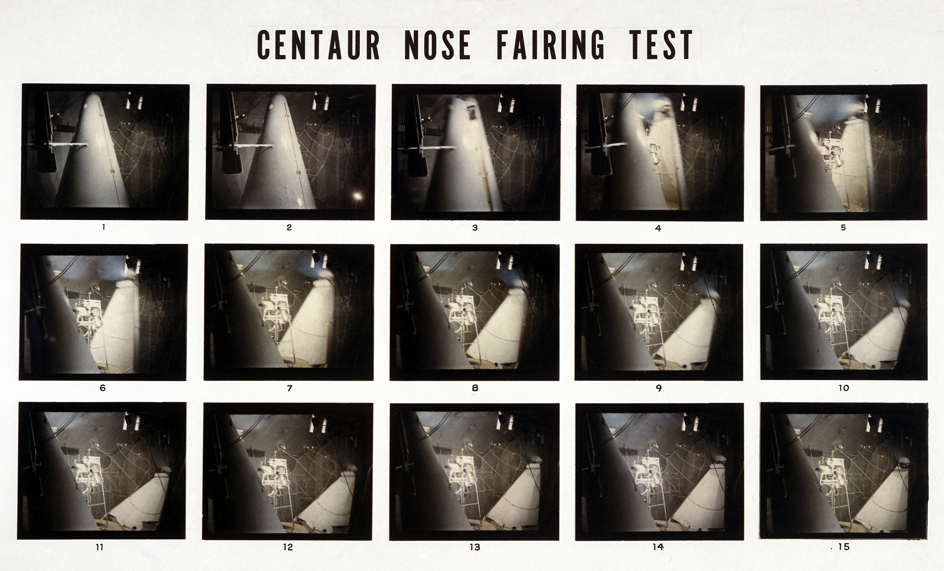 High-speed photographs of Surveyor shroud jettison in Space Power Chamber No. 1.