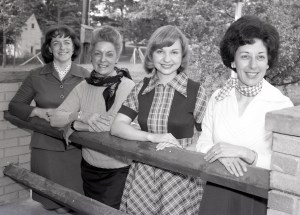 Newly elected BPW officers in June 1977 included (from left) June Szucs (secretary and Community Relations assistant for 39 years), Del Zatroch (an executive secretary for over 45 years), Loretta Shaw (an aerospace engineer and chief of the Compressor Branch), and Jean Bertoia (Materials and Stresses Division secretary and External Affairs specialist).