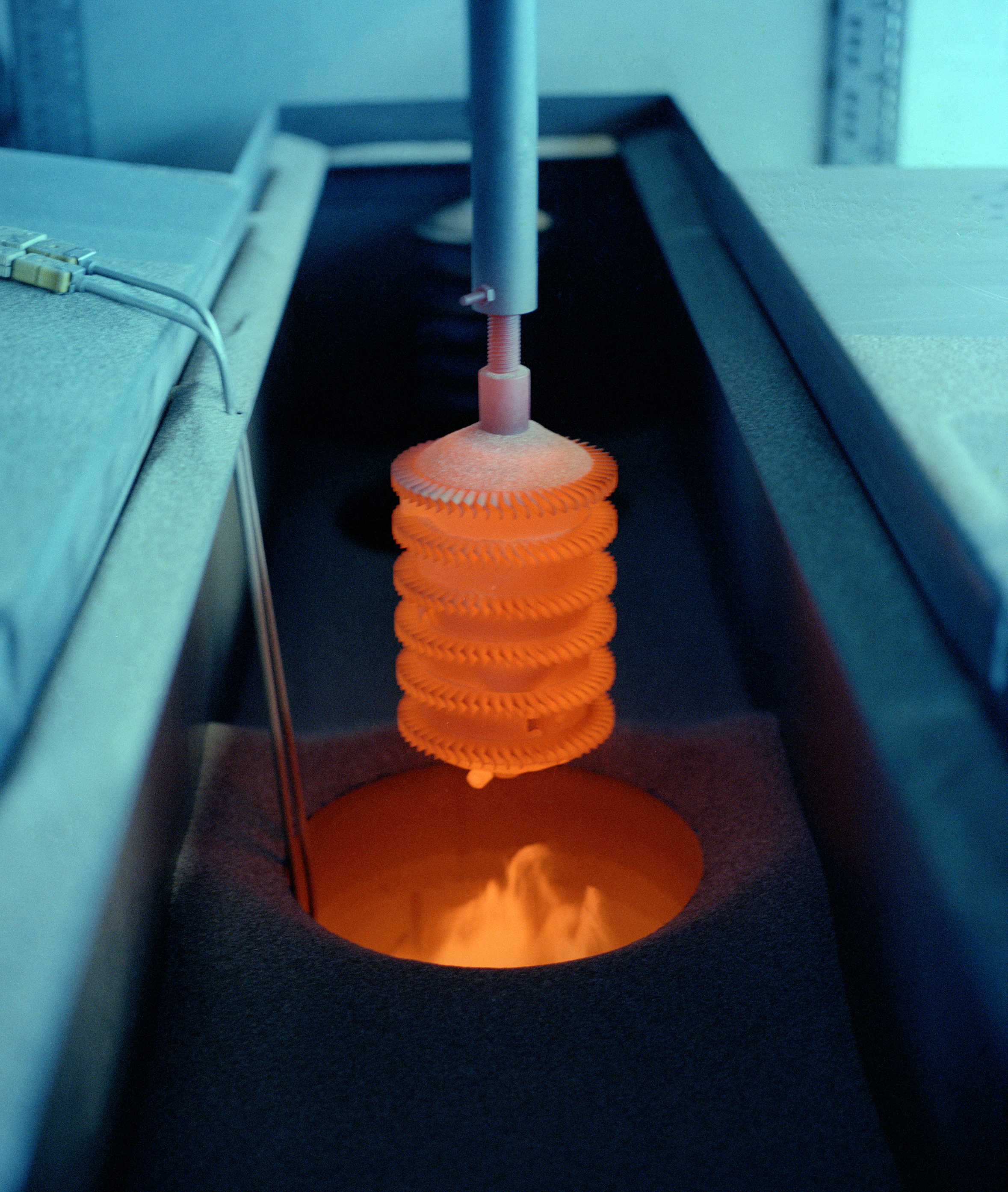 Auto turbine wheel in the Rocket Lab's Fluidized Bed (1979).