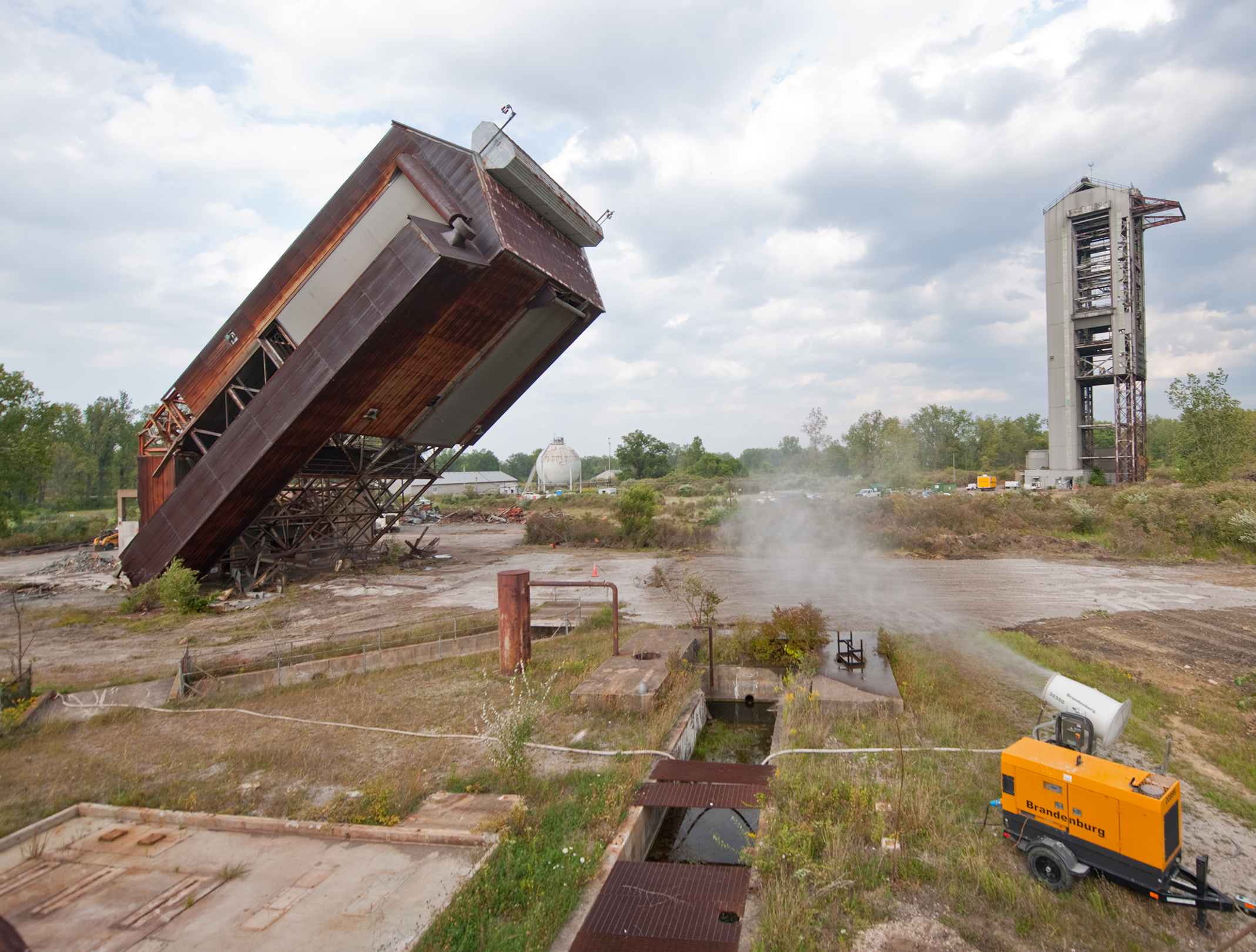 Demolition of the B-1 test stand. The B-3 stand is in the background (9/7/2010).