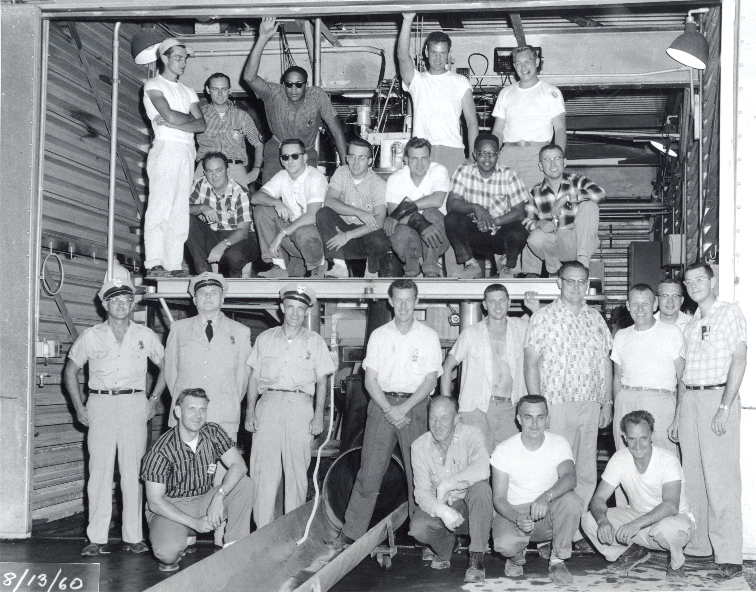Plum Brook staff gathers at J-2 to mark the first liquid hydrogen-liquid fluorine engine test at Plum Brook on August 13, 1960.